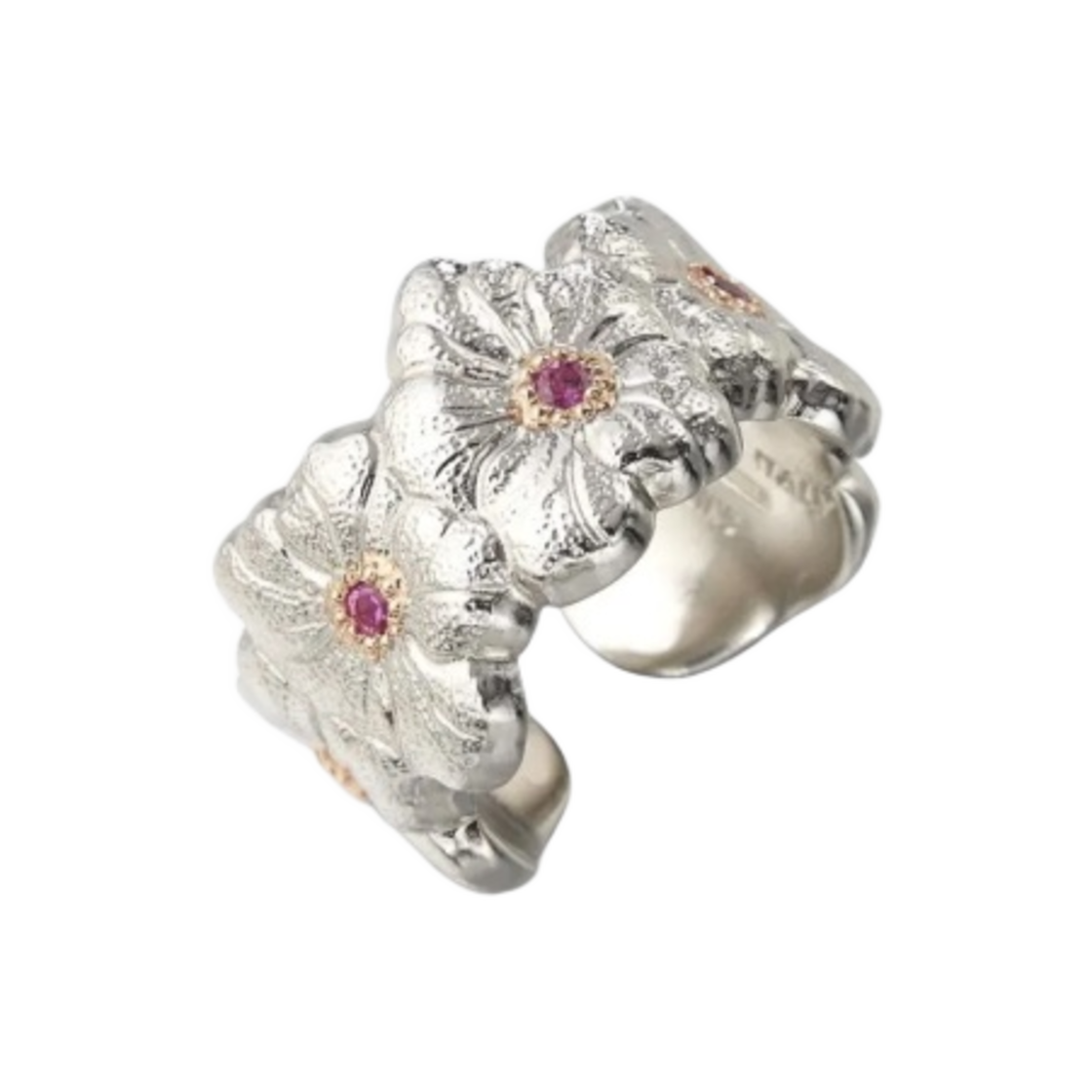 Buccellati Blossoms Eternelle Gardenia Ring with Pink Sapphires Vermeil Sterling Silver