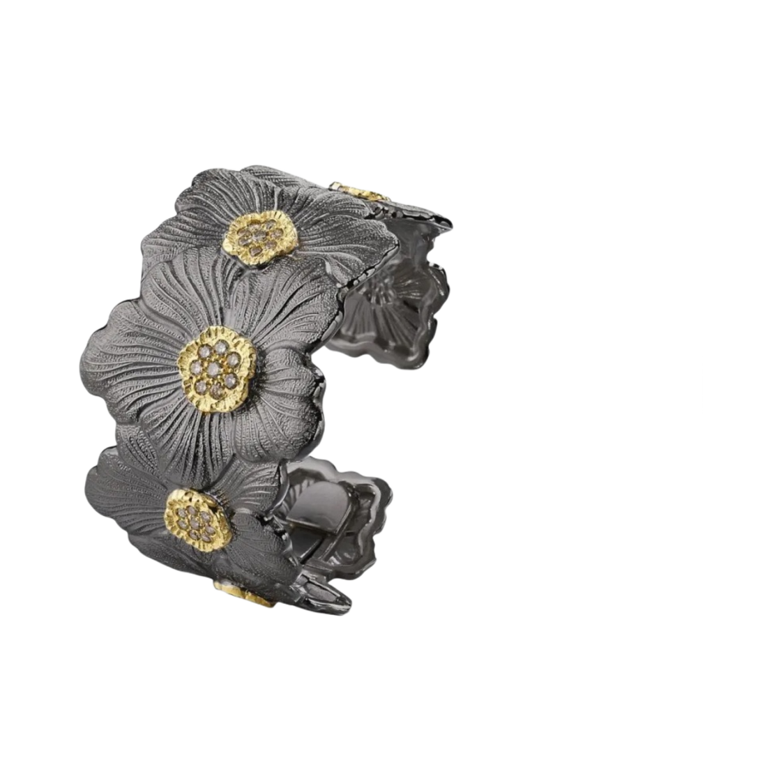 Buccellati Blossoms Gardenia Bracelet with Brown Diamonds Vermeil Oxidized Sterling Silver