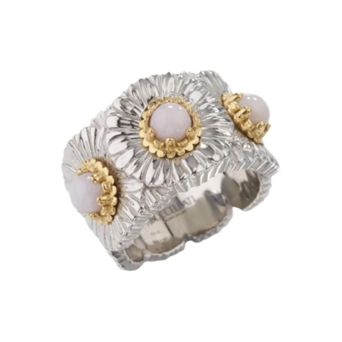 Buccellati Blossoms Eternelle Daisy Ring with Diamonds Pink Opal Sterling Silver