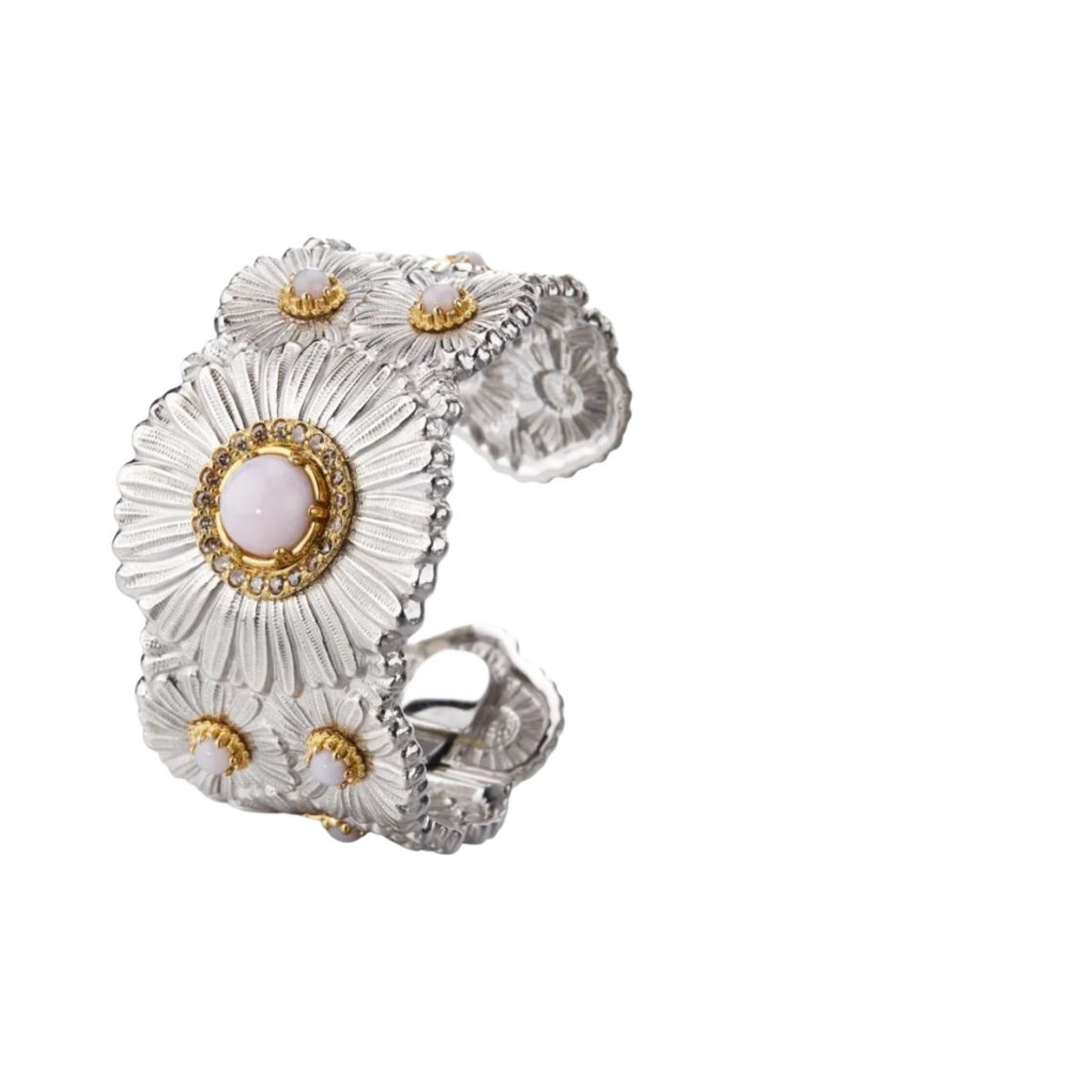Buccellati Blossoms Daisy Bracelet with Diamonds Pink Opal Sterling Silver
