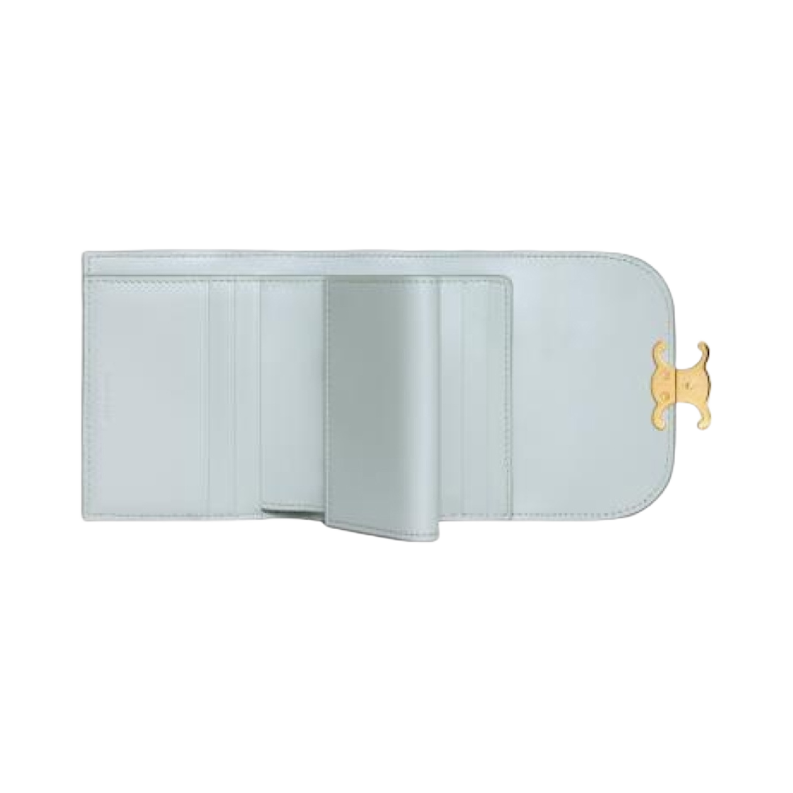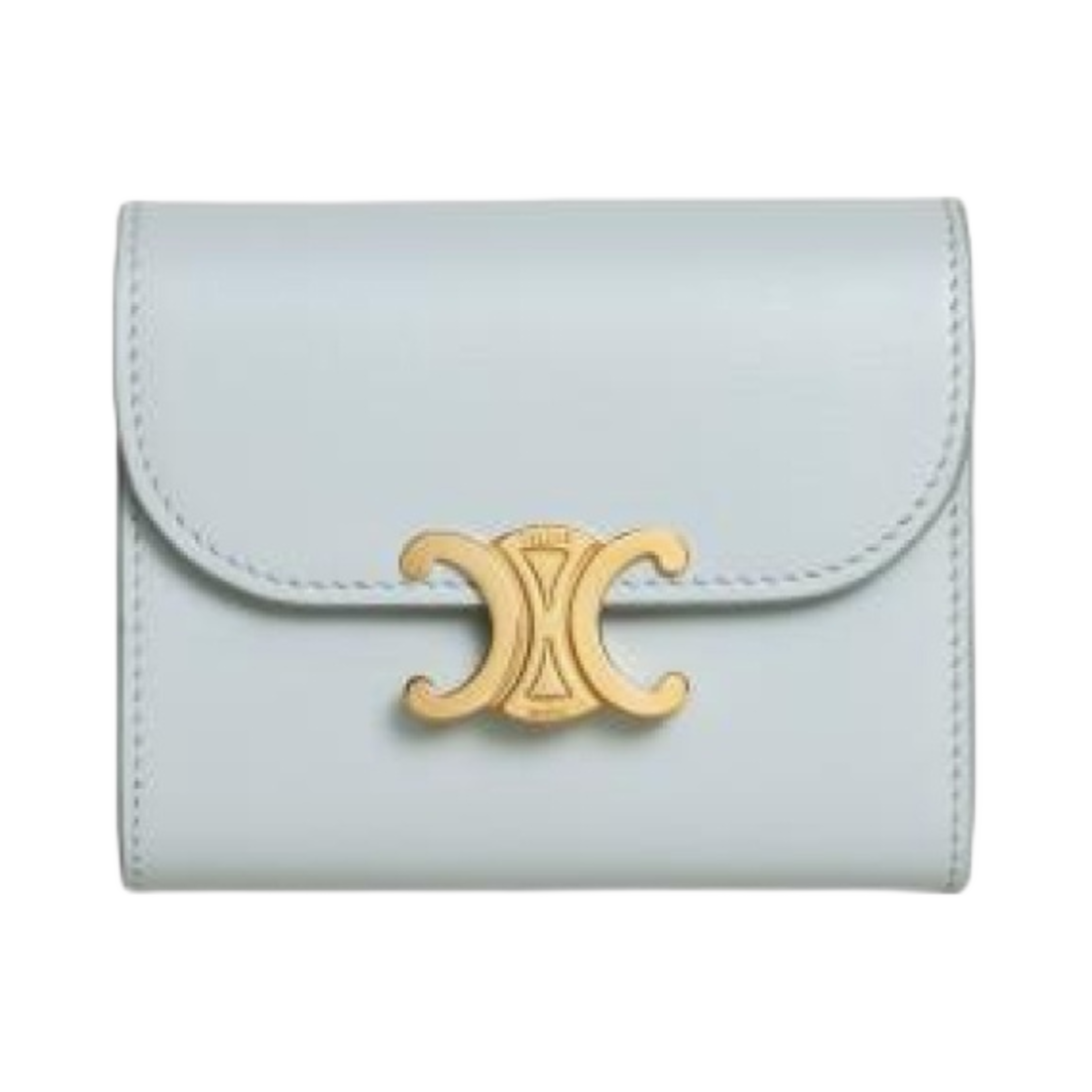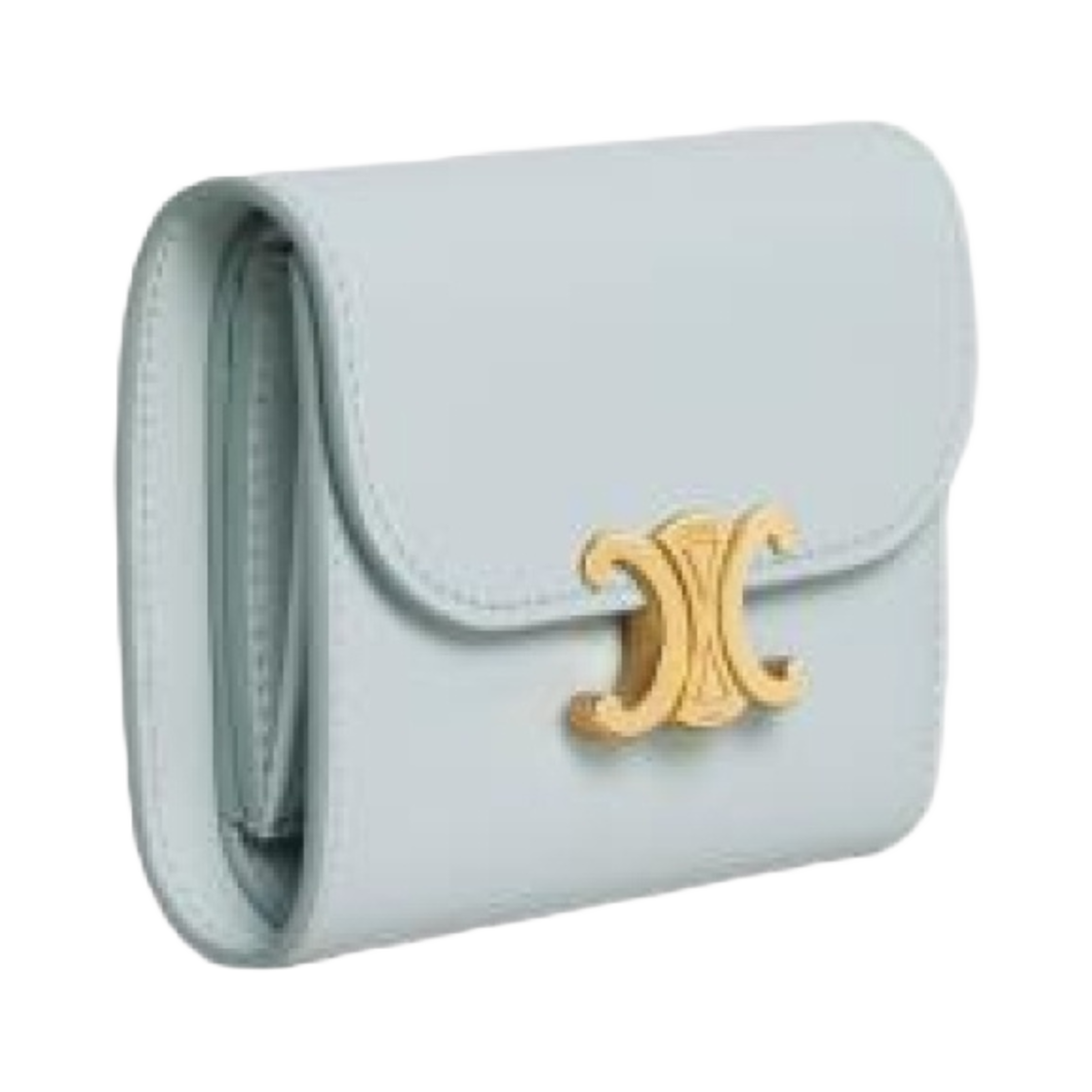 Celine Small Wallet Triomphe in Shiny Calfskin Soft Blue