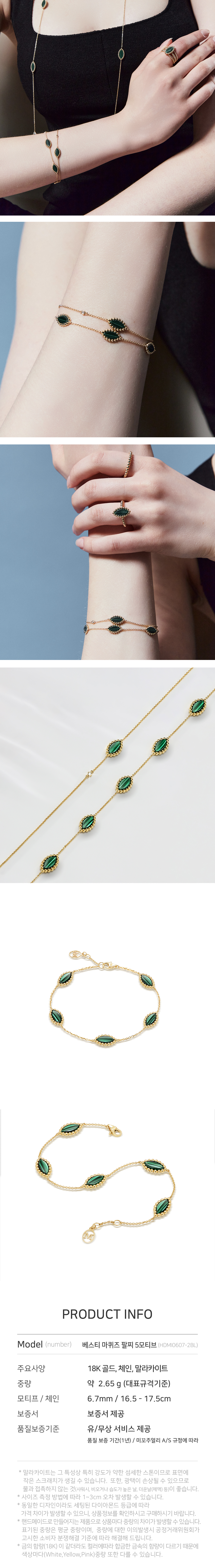미꼬 우먼 베스티 마퀴즈 말라카이트 5 모티브 브레이슬릿 옐로우 골드