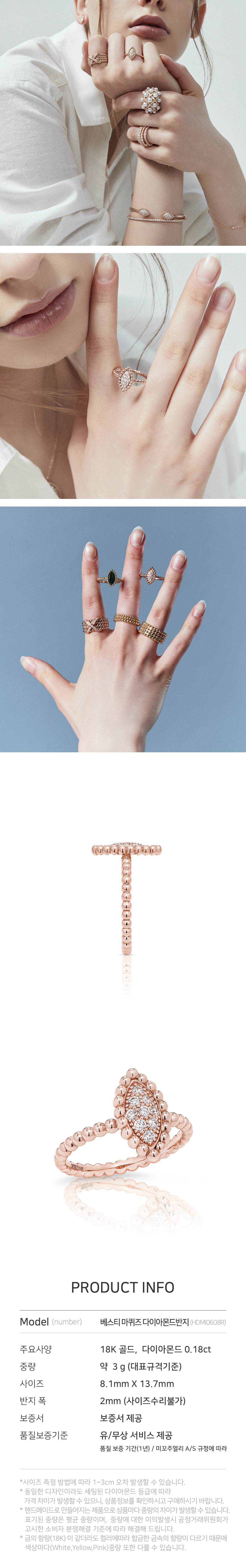 해당 상품 구입시 제작 및 출고에 영업일 기준 최대 14일이 소요됩니다. 언제나, 어디서나 동일한 가치를 인정받는 최상의 스톤만을 셀렉합니다. 미꼬의 스톤 전문가는 뉴욕, 홍콩, 인도, 일본, 벨기에 등 세계 각지에서 매일 소통하며 다이아몬드를 비롯한 스톤을 선택합니다. 3부이상 : GIA 다이아몬드 Only. 3부미만 : G/VS2/VG(별도표기 없을 시 기본등급) H/SI2/VG(일부 온라인 익스클루시브 제품, 제품명에 SI2 표기) 미꼬는 100% 핸드메이드로 외주공정이 아닌 독자적인 장인들의 공정운영으로 고객 한 분 만을 위한 주얼리입니다. 재고상품을 판매하는 것이 아닌 최상의 퀄리티를 가진 오더메이드 파인주얼리를 재공하고자하는 미꼬의 브랜드 규정입니다. 크림에서 판매되는 미꼬의 모든 주얼리는 18k Gold로 제작된 핸드메이드 파인주얼리입니다.