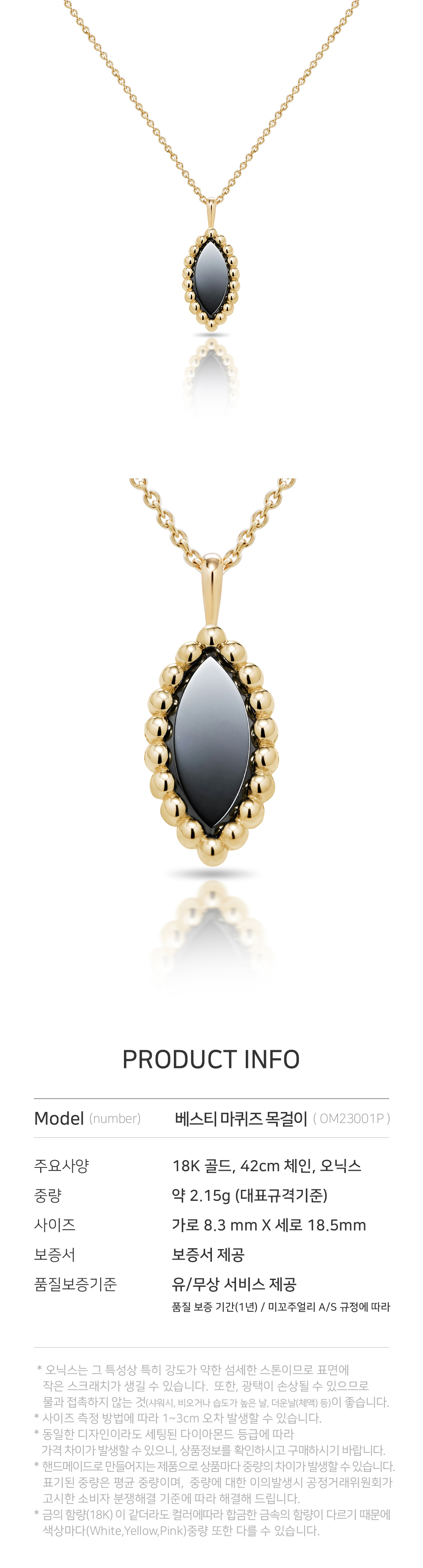 [KREAM 단독] Miko Vasty Marquise Onyx Necklace Yellow Gold