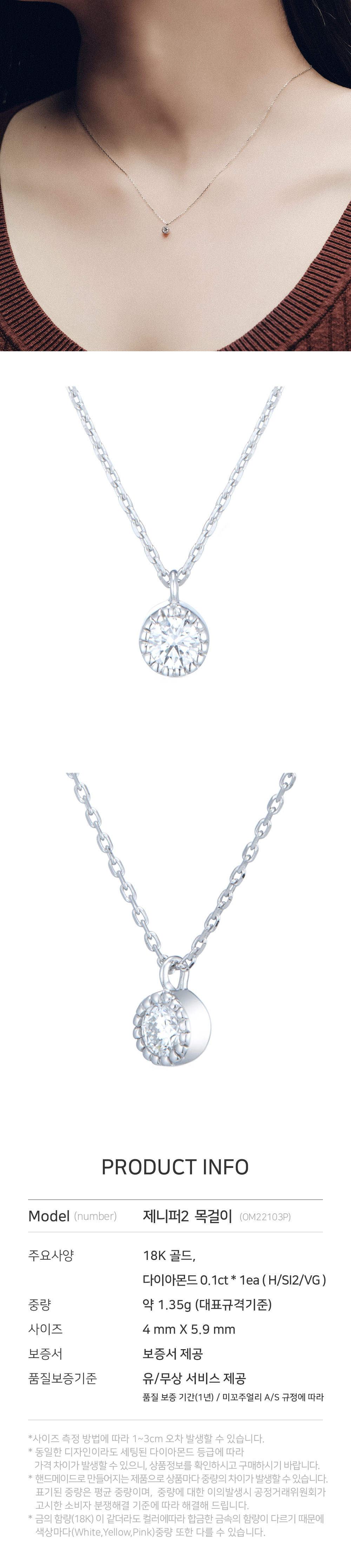 미꼬 우먼 제니퍼 0.1 캐럿 Si2 다이아몬드 네클리스 화이트 골드