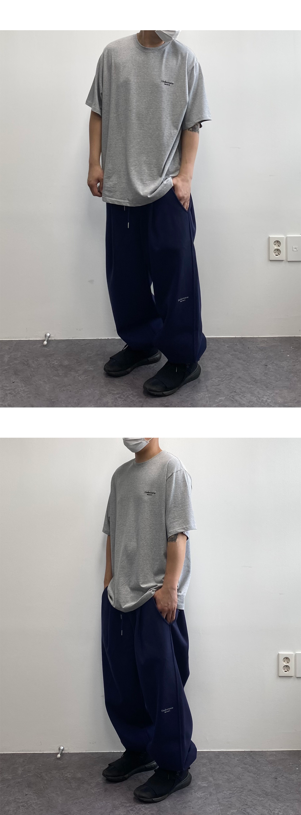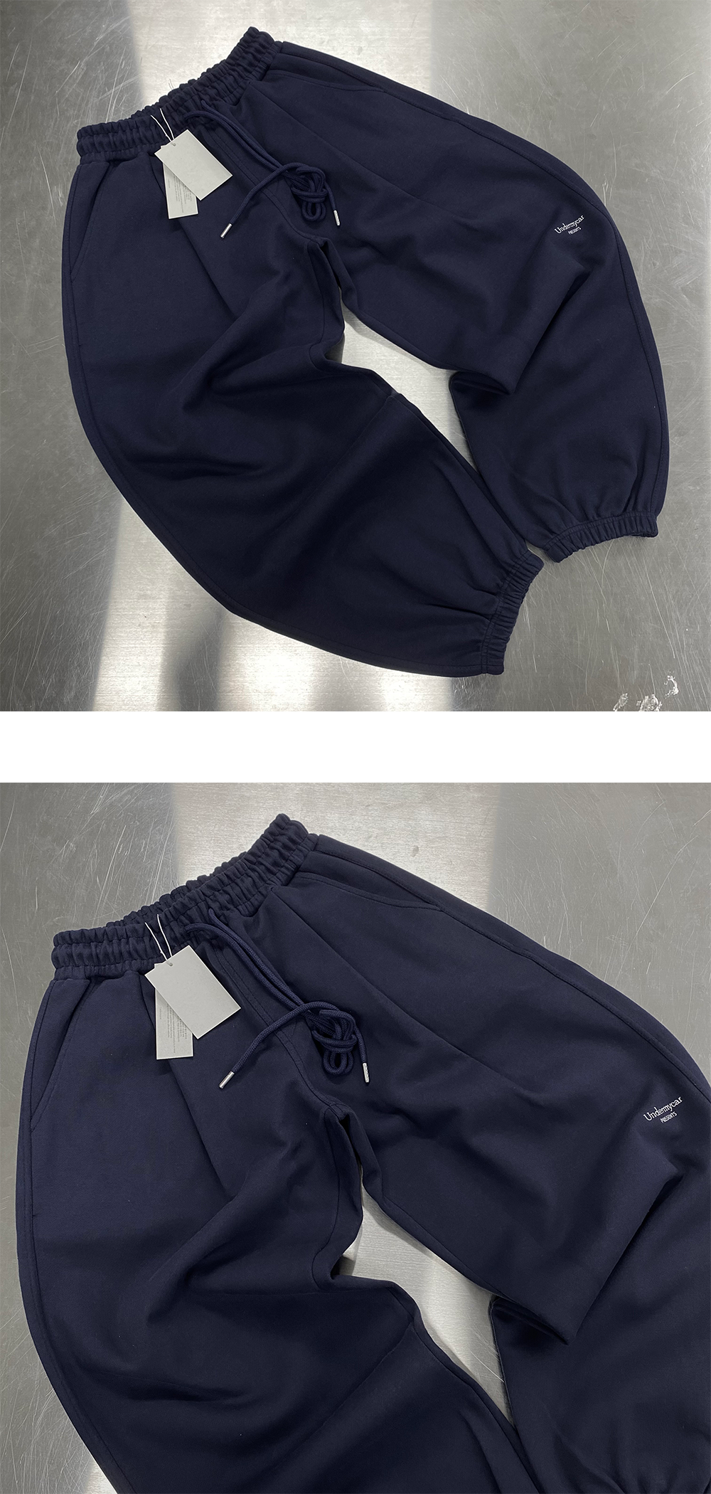 언더마이카 무.03 안티 Fxxking 로고 플레이 오버사이즈 스웨트 조거 네이비