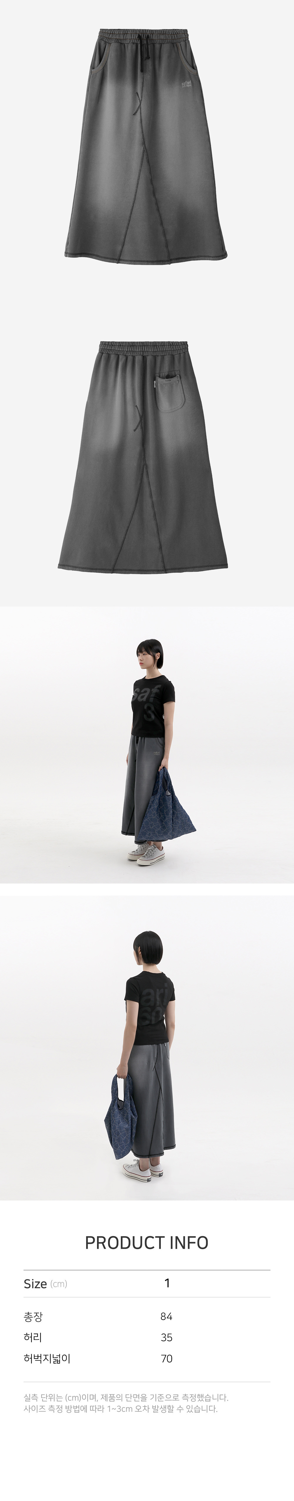 사파리스팟 베이직 데미지 워싱 데님 스웻스커트 블랙