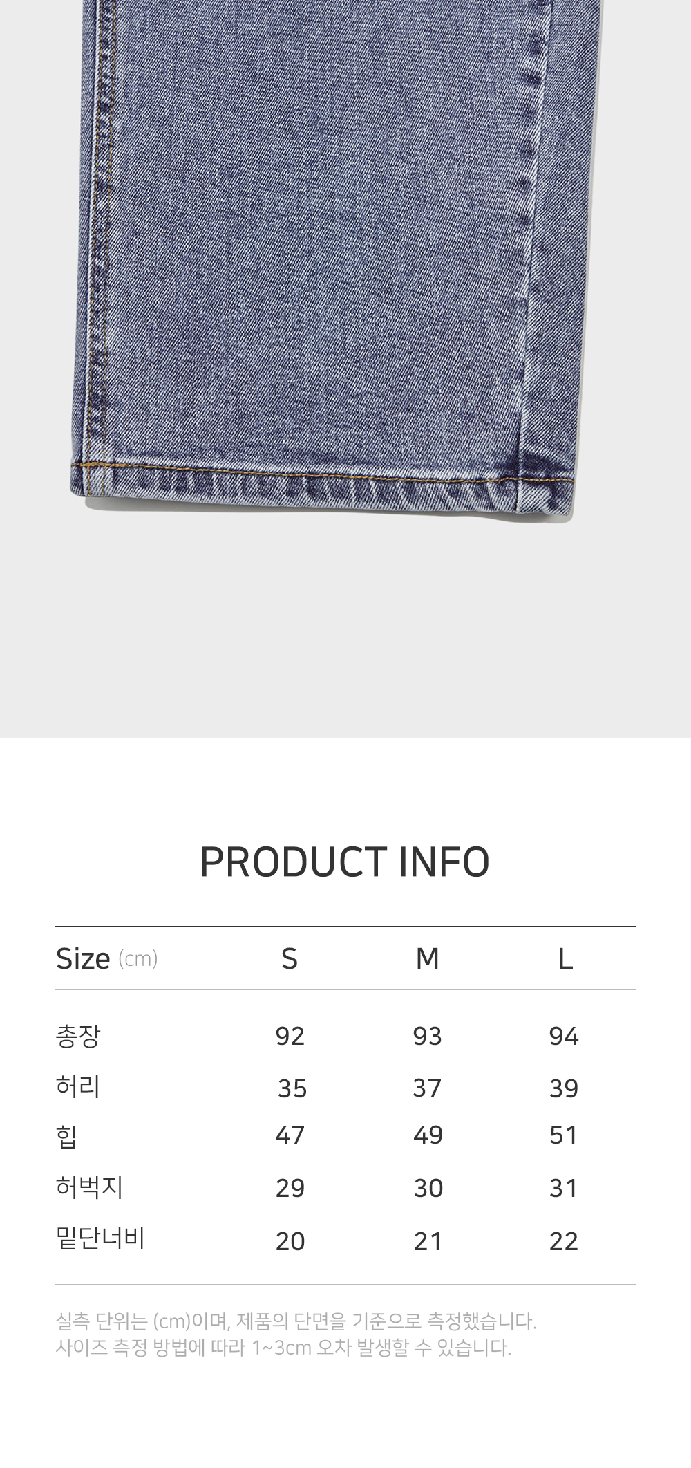 | 총장 | 허리단면 | 엉덩이단면 | 밑위길이 | 허벅지단면 | 밑단단면 |