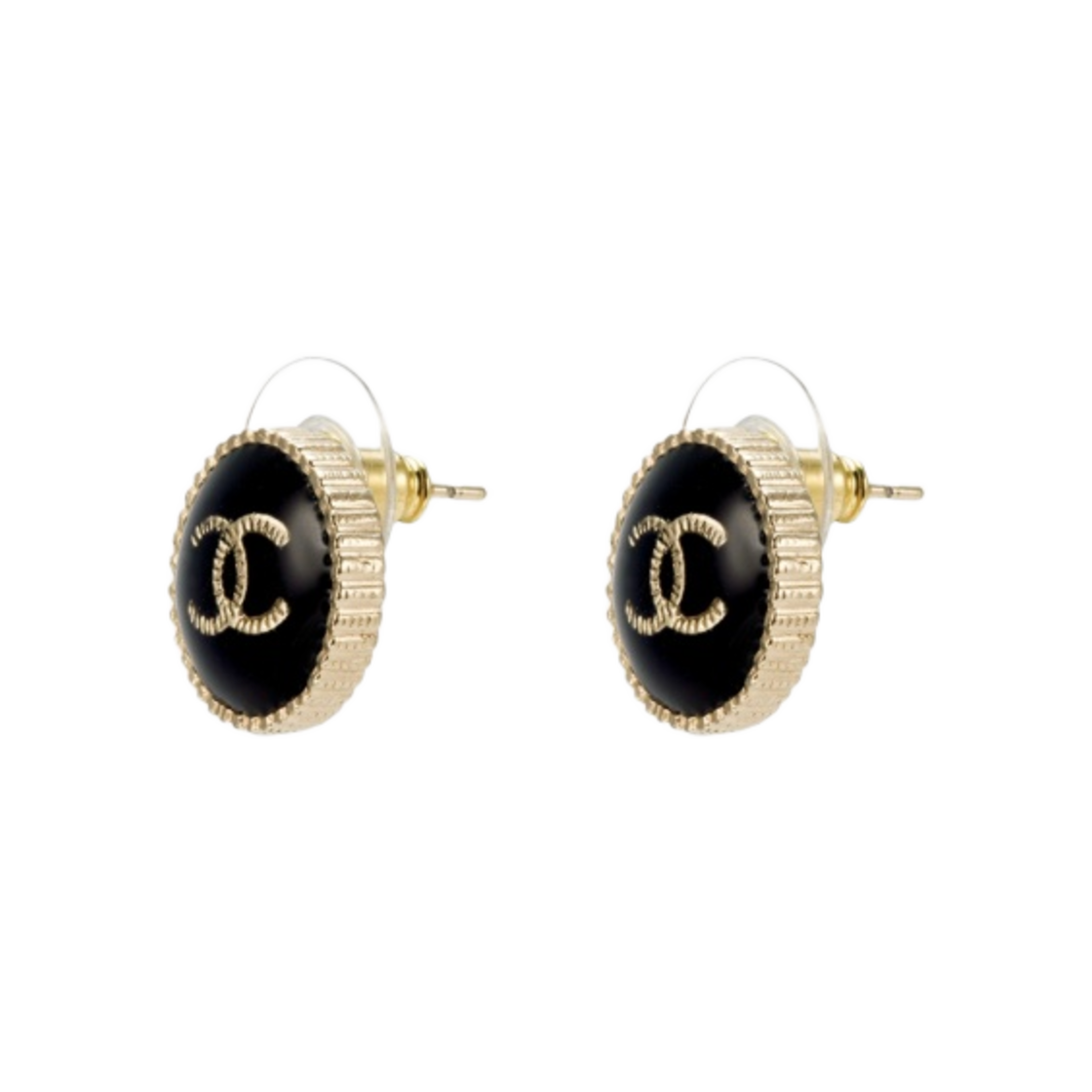(W) 샤넬 이어링 메탈 레진 & 골드 블랙