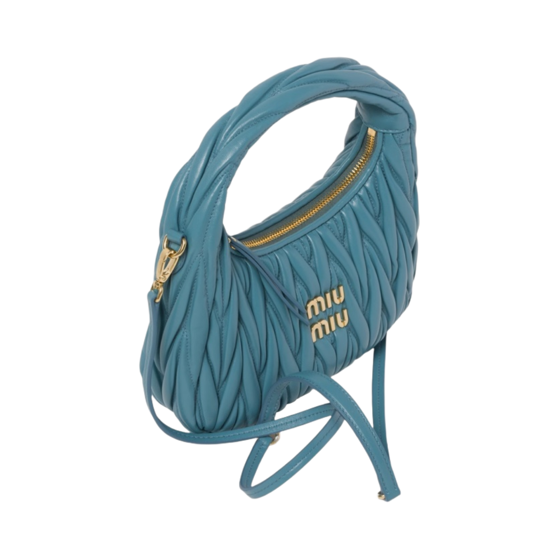 Miu Miu Wander Matelasse Nappa Leather Mini Hobo Bag Marina Blue