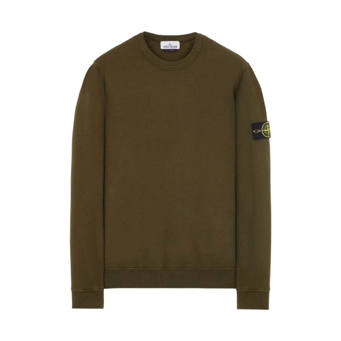 Stone Island 62420 Brushed Cotton Fleece Garment Dyed Crewneck Sweatshirt Olive Green - 23FW