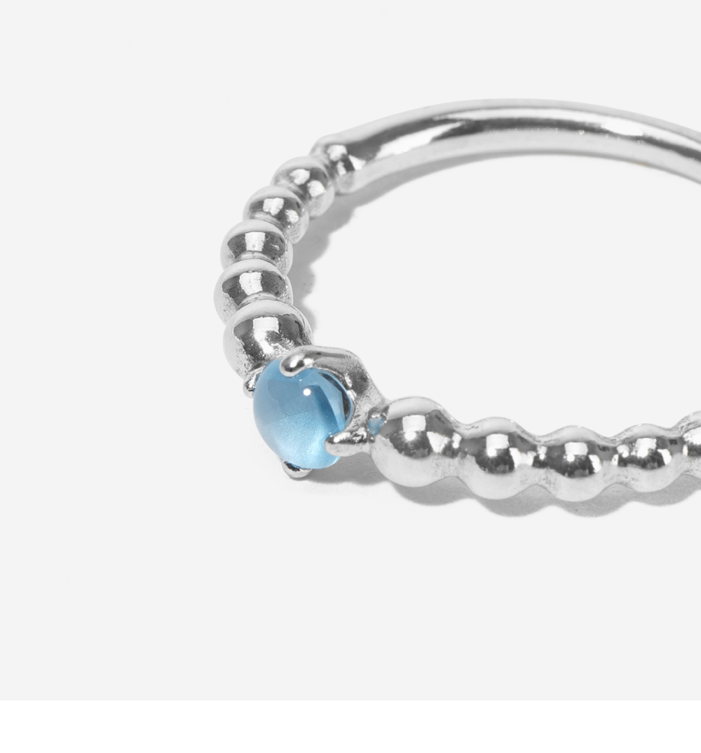 (W) Pandora December Beaded Ring Sterling Silver Sky Blue