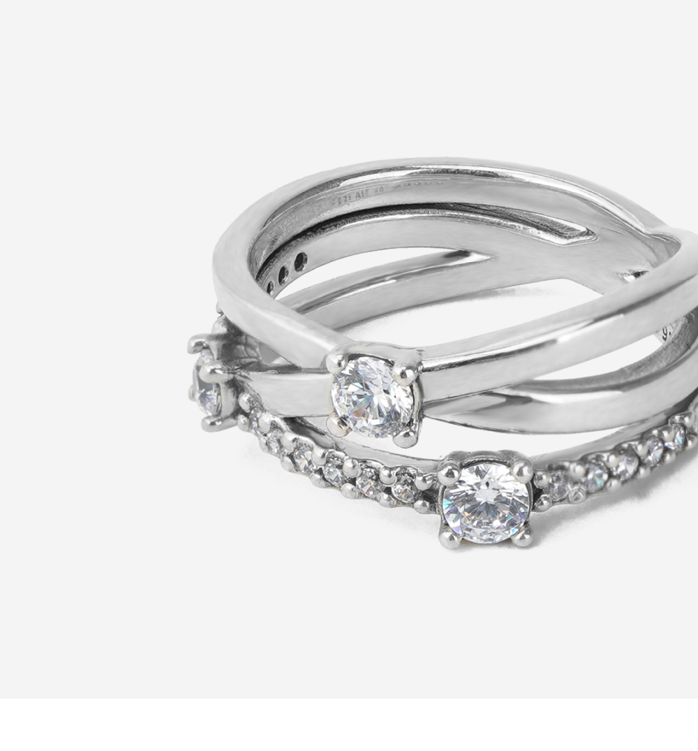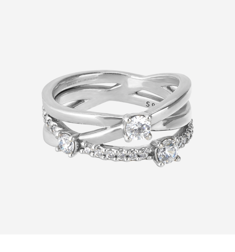(W) Pandora Sparkling Triple Band Ring Sterling Silver Clear