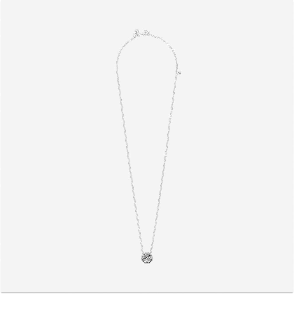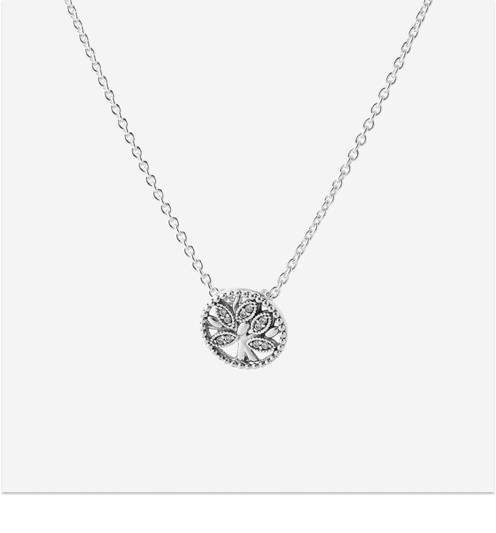 (W) Pandora Sparkling Family Tree Necklace Sterling Silver Clear