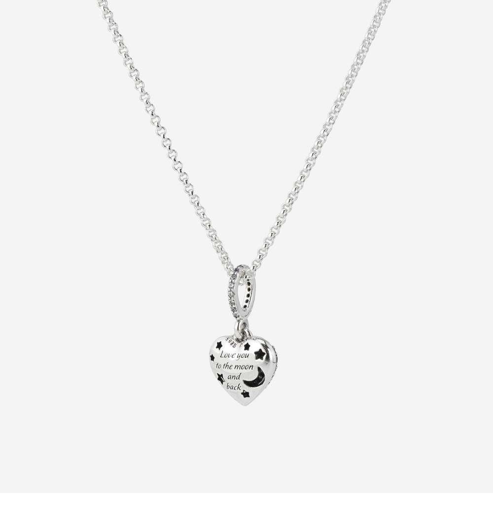 (W) Pandora Sparkling Blue Moon & Stars Heart Necklace Sterling Silver Blue