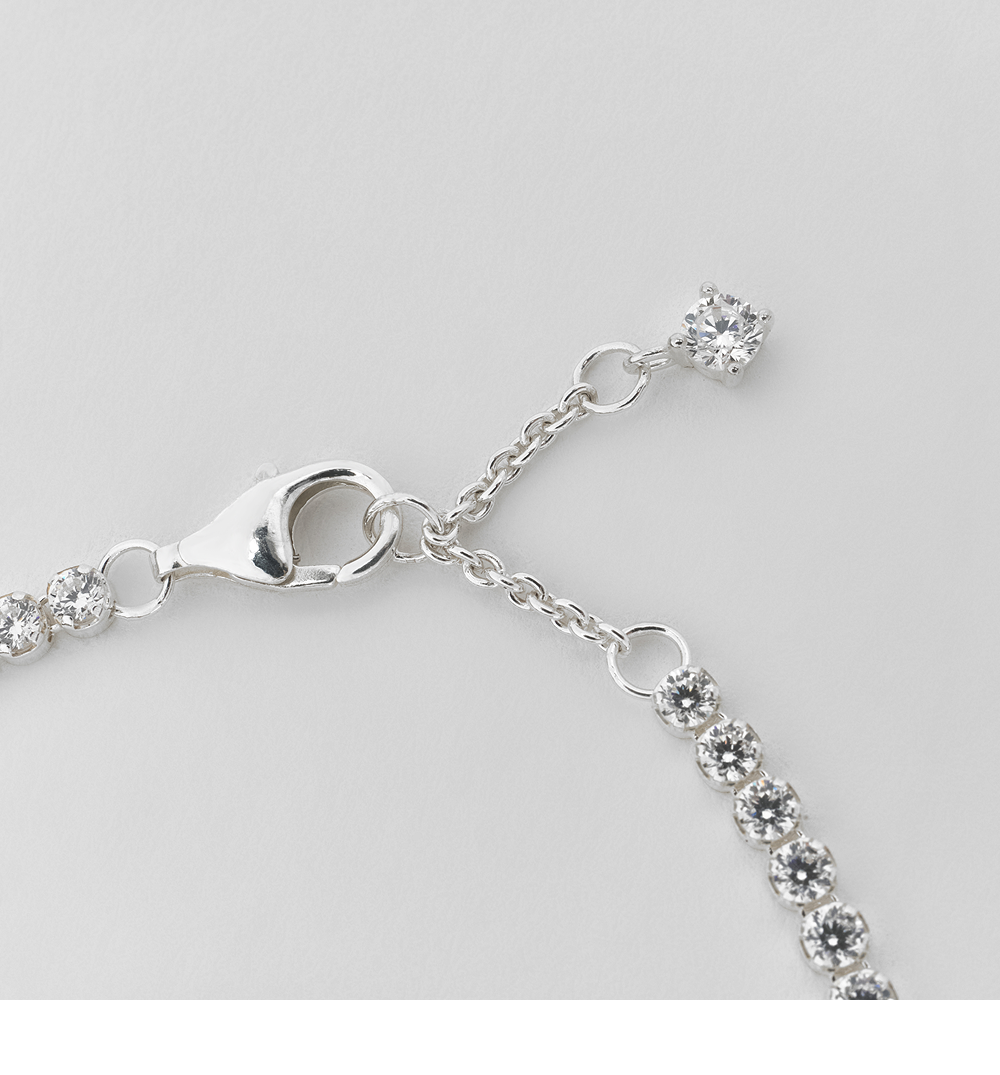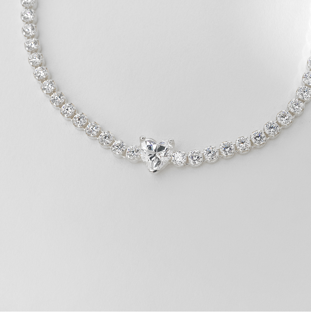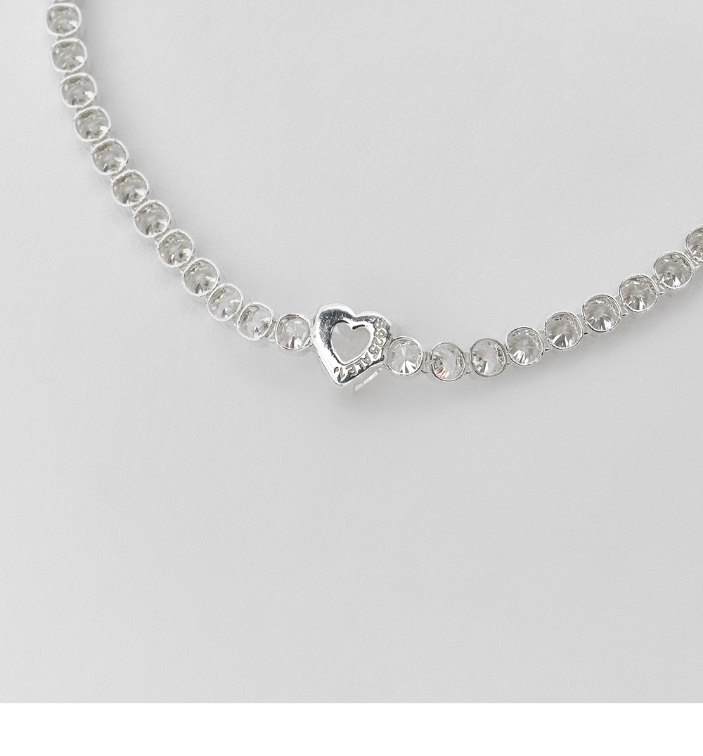 (W) 판도라 스파클링 하트 테니스 브레이슬릿 스털링 실버 클리어