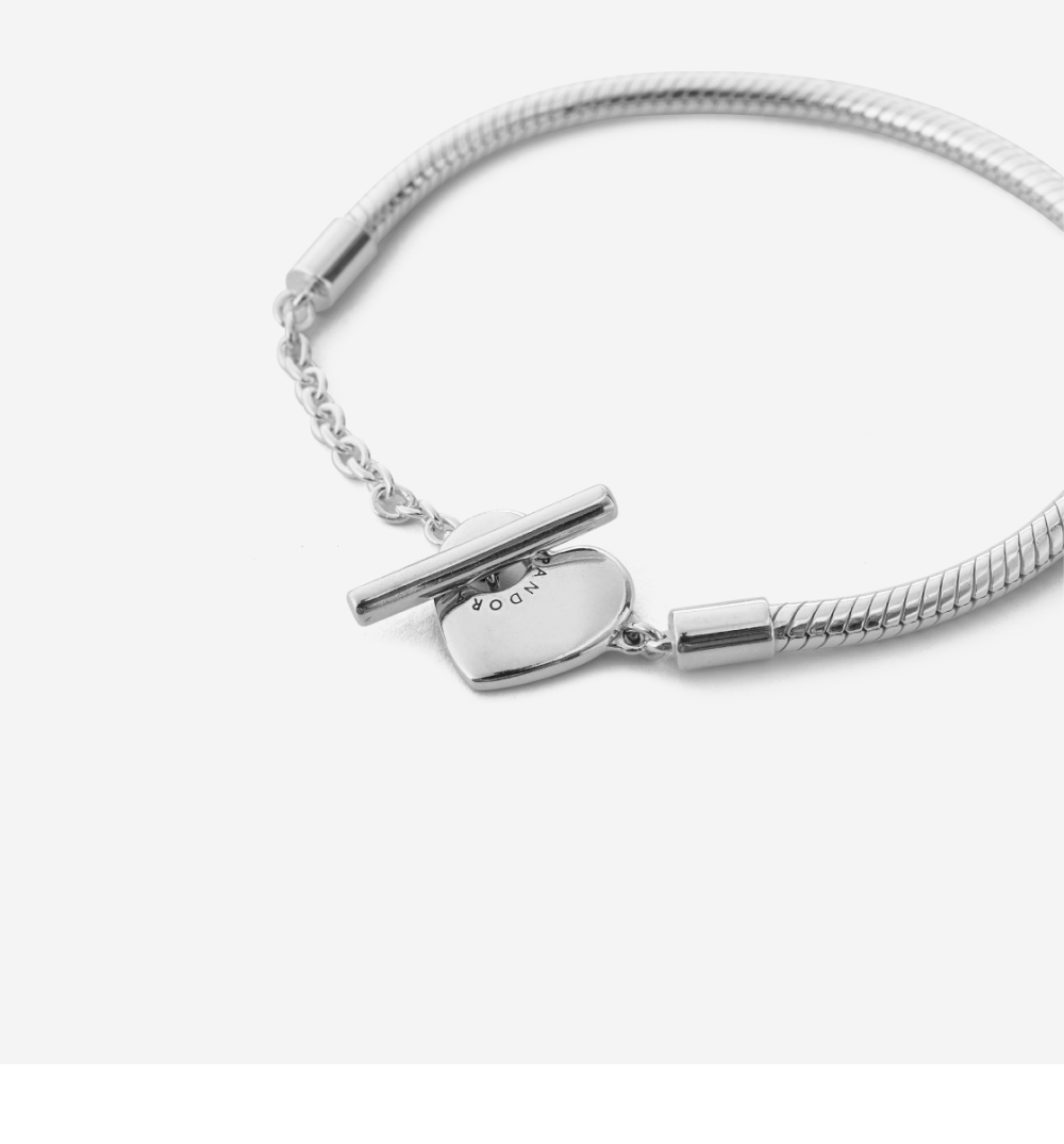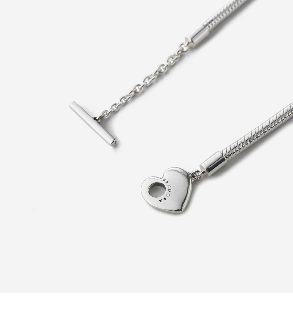 (W) 판도라 모먼트 하트 T-바 스네이크 체인 브레이슬릿 스털링 실버