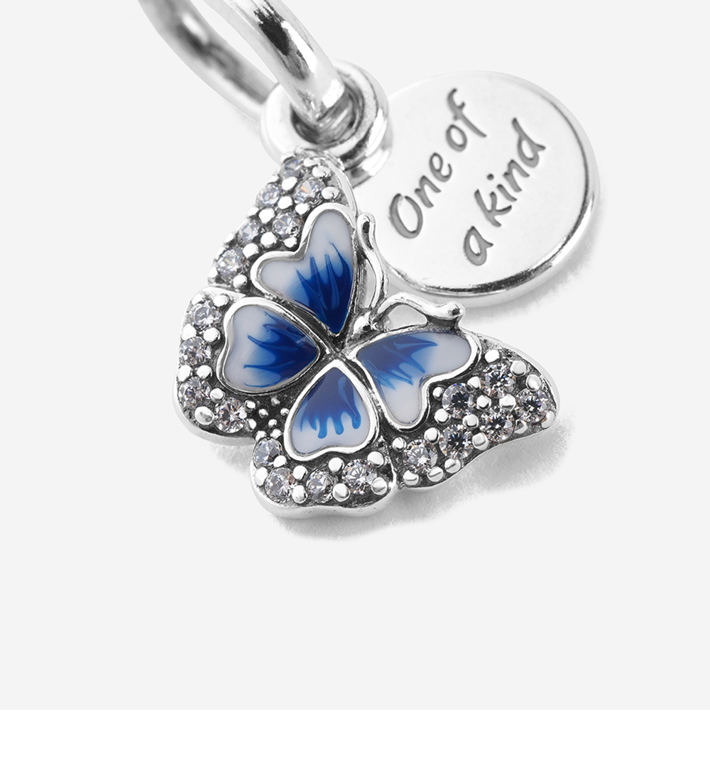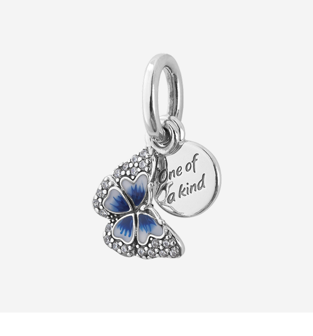 (W) Pandora Butterfly & Quote Double Dangle Charm Sterling Silver Blue