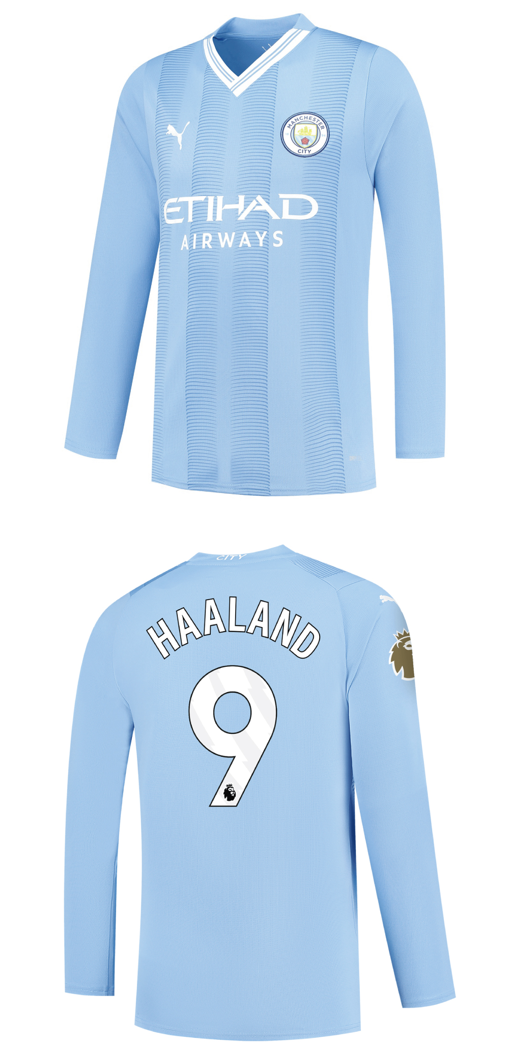푸마 맨체스터 시티 2023/24 홈 롱슬리브 저지 팀 라이트 블루 필 포든 (프리미어 리그 풀 마킹 버전)