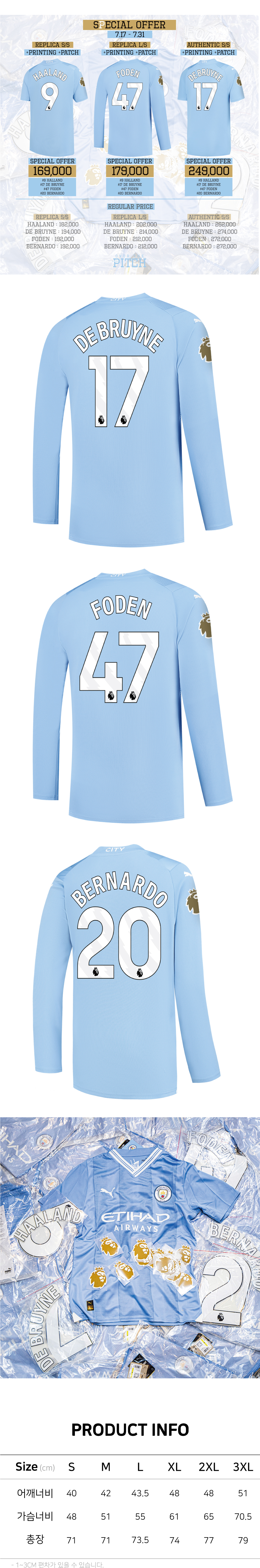푸마 맨체스터 시티 2023/24 홈 롱슬리브 저지 팀 라이트 블루 엘링 홀란드 (프리미어 리그 풀 마킹 버전)