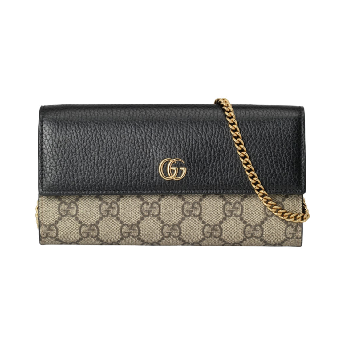 Gucci GG Marmont Chain Wallet Black Leather GG Supreme