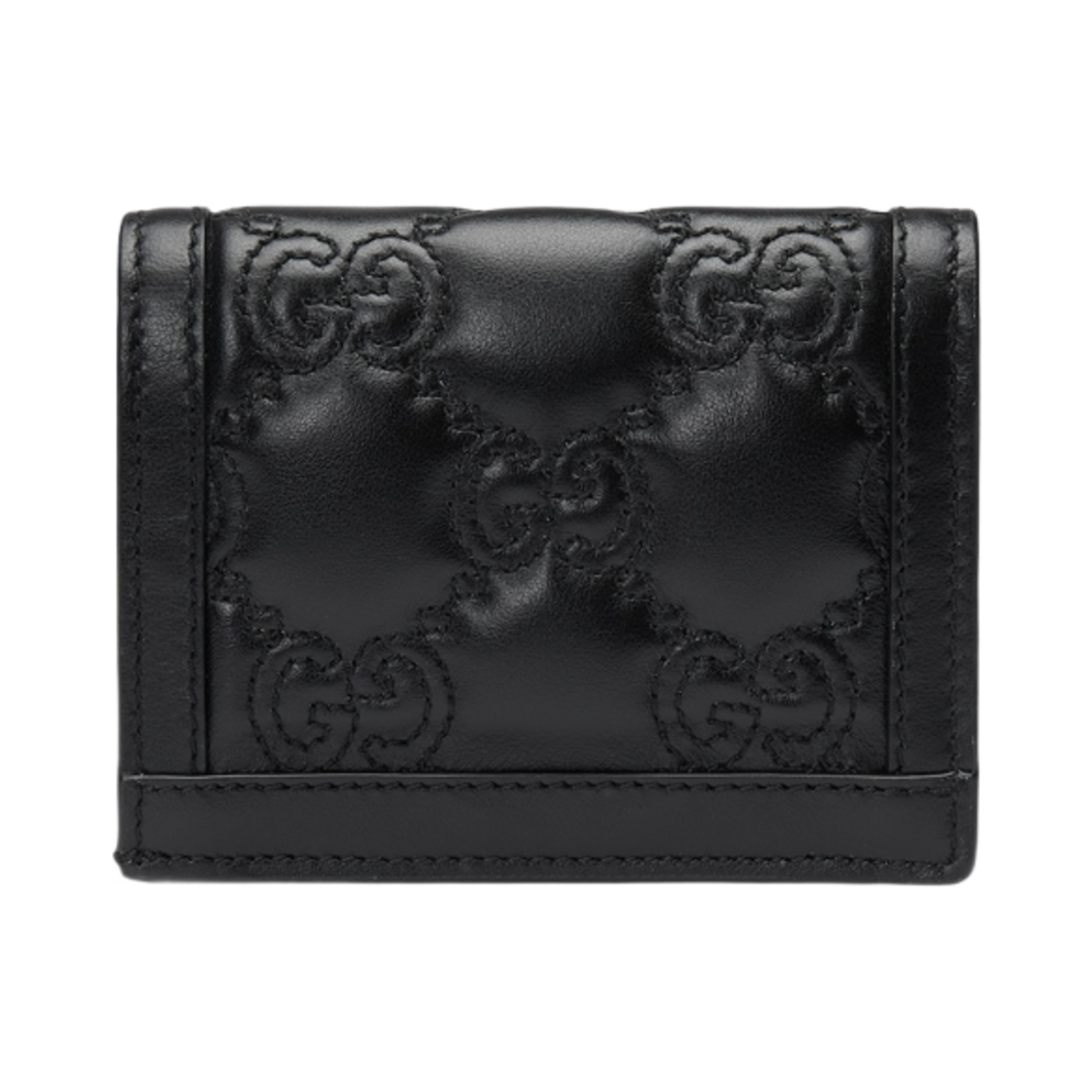 Gucci GG Matelasse Card Case Wallet Black Leather