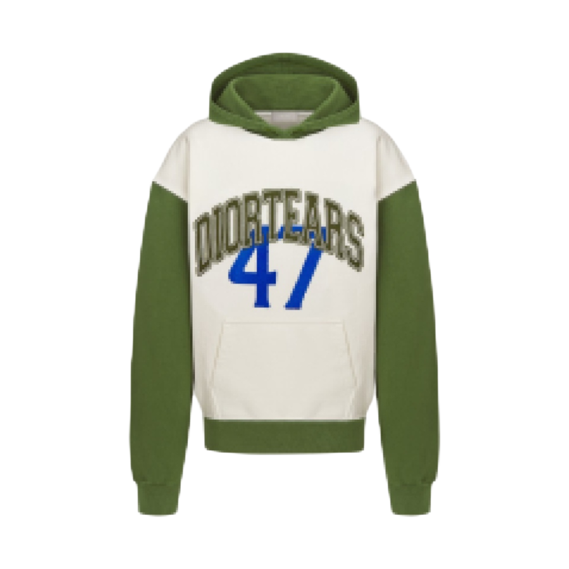 디올 x 데님 티어스 디올 티어스 오버사이즈 후드 스웨트셔츠 코튼 플리스 화이트 그린
