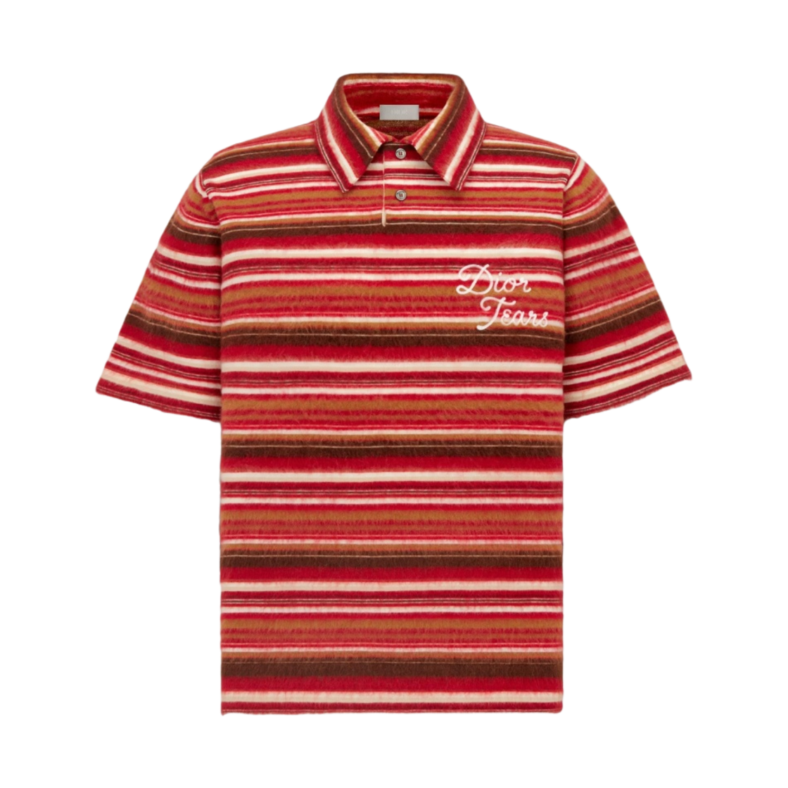 디올 x 데님 티어스 디올 티어스 모헤어 알파카 코튼 블렌드 브러시드 니트 폴로 셔츠 브라운 레드