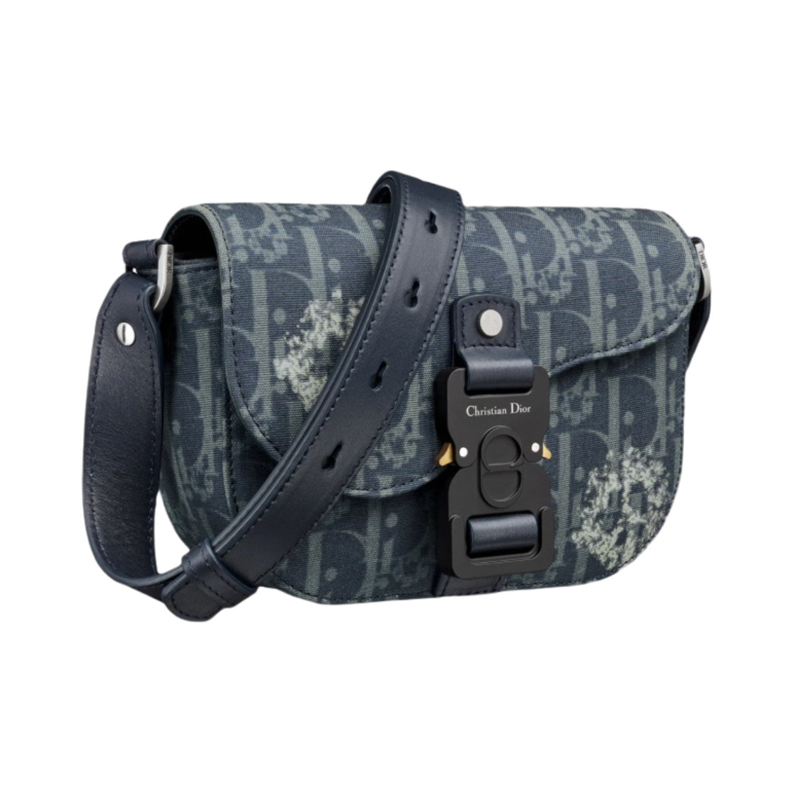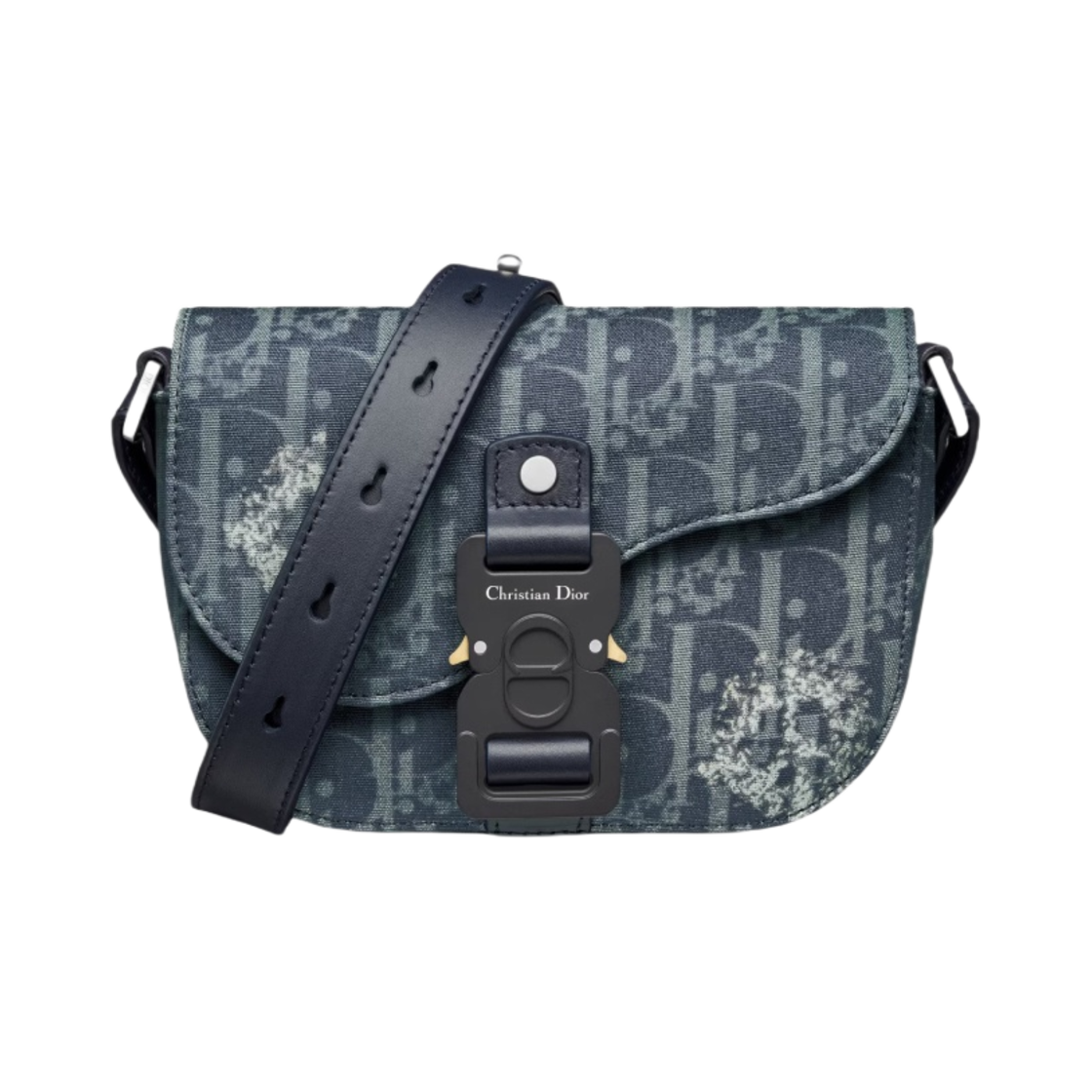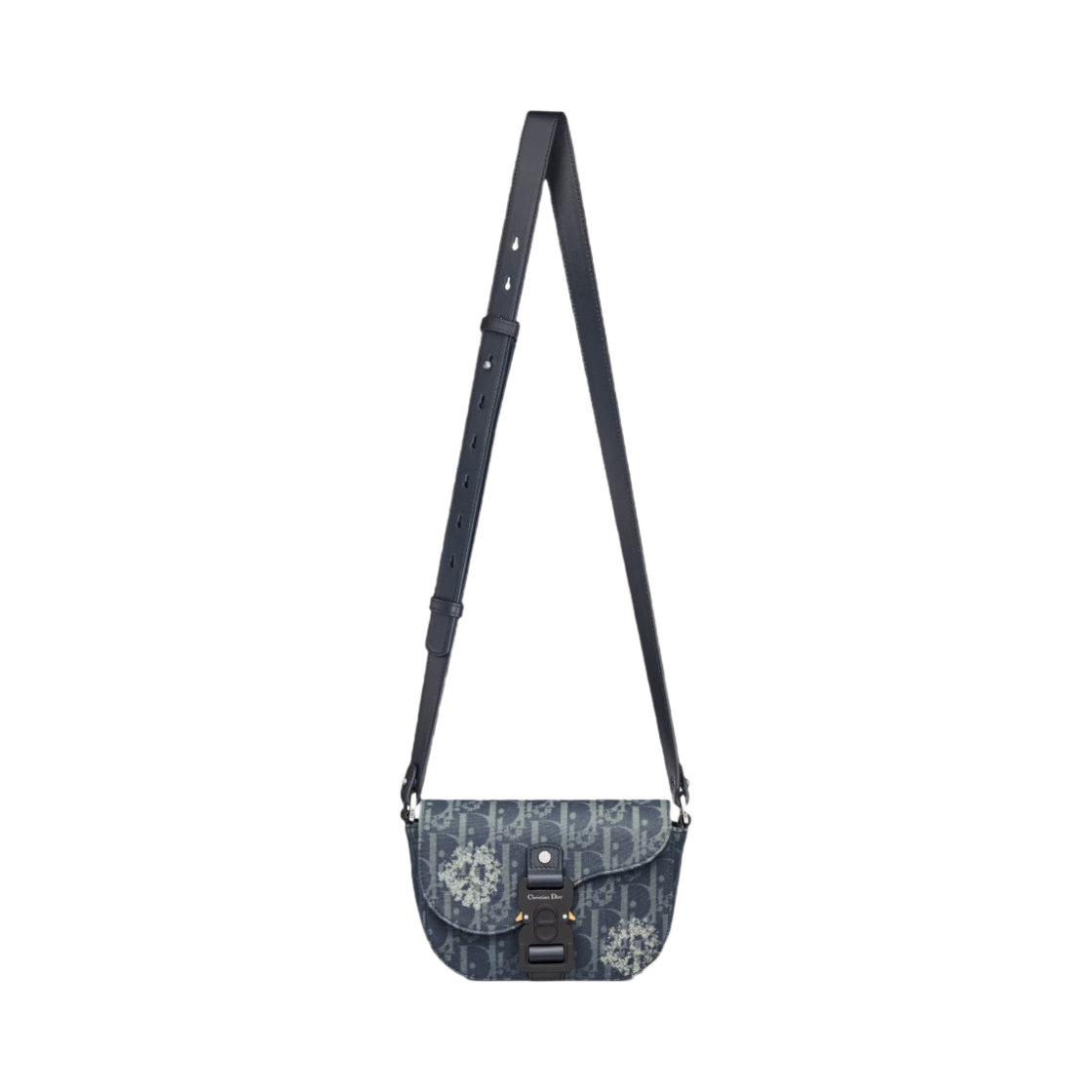 Dior x Denim Tears Saddle Pouch With Strap Denim Dior Oblique Blue And Peace Sign Dior Tears
