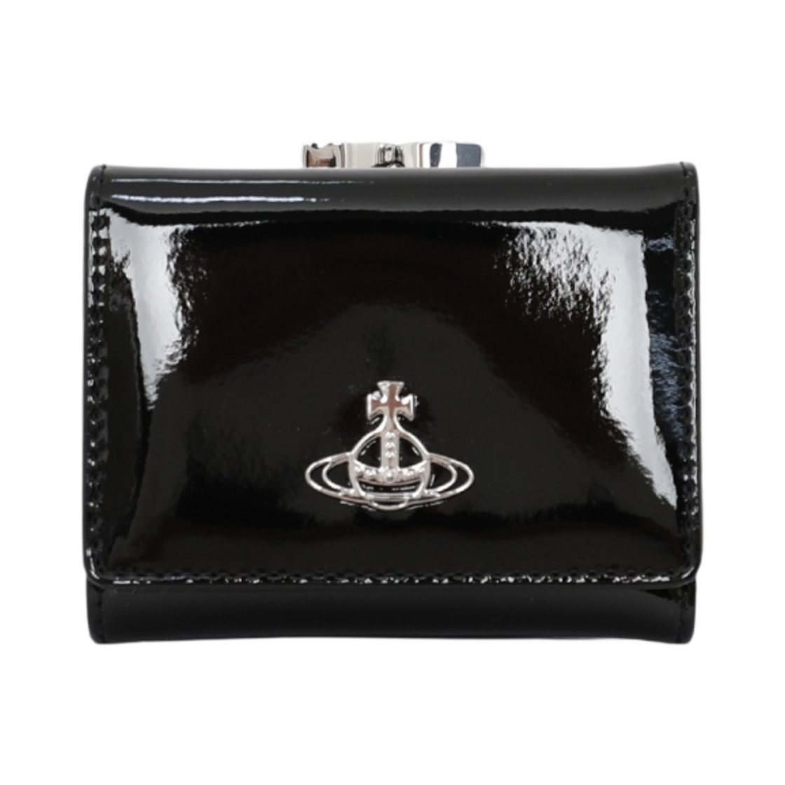 비비안 웨스트우드 샤이니 페이턴트 스몰 프레임 반지갑 블랙