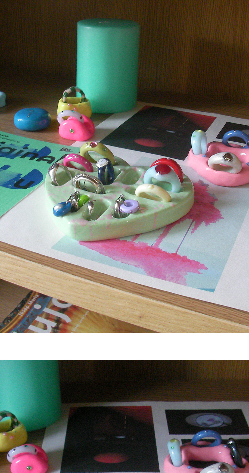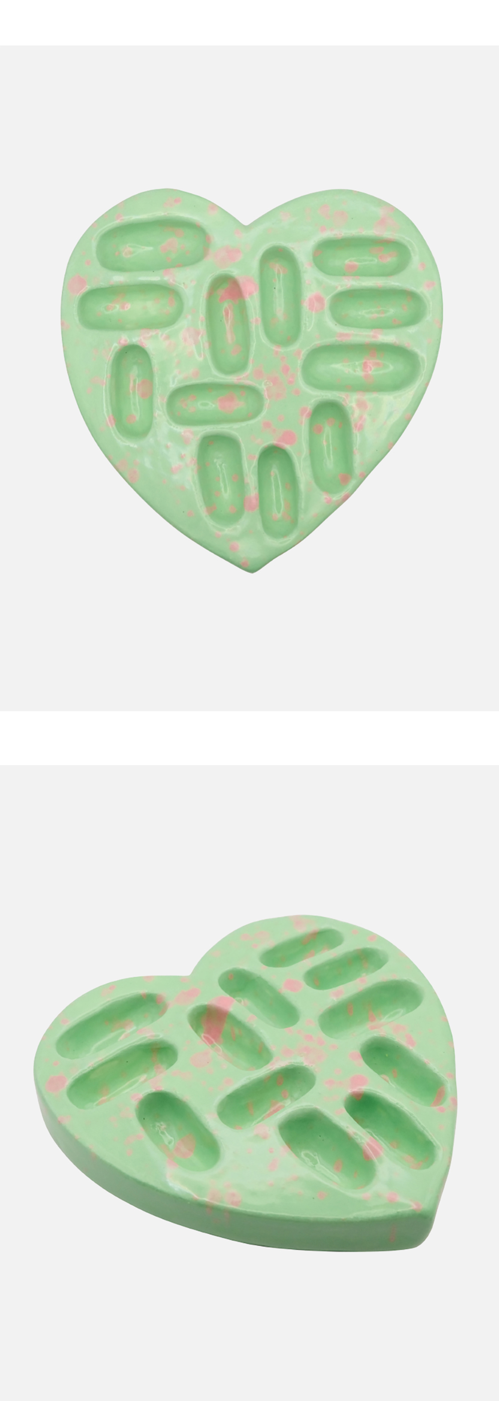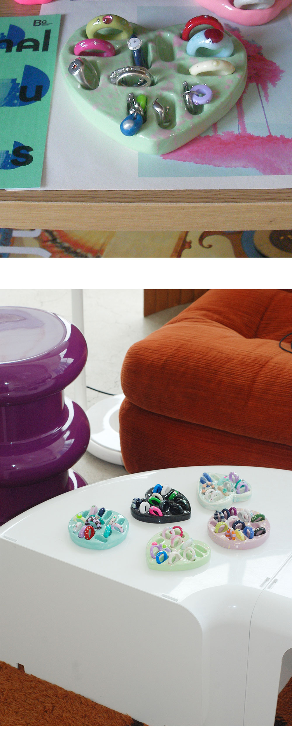 세라믹으로 제작된 반지 홀더입니다 너비가 각기 다르게 되어 있어 얇은 반지의 경우 여러 개 겹쳐서 활용 가능하며 넓은 부분은 체커보드 반지가 들어가는 사이즈로 제작되었습니다 호수에 따라 반지의 굵기에 따라 맞지 않는 부분도 있으니 참고 바랍니다 *핸드 페인팅 작업 시 사진에 보이는 패턴과 조금씩 다를 수 있습니다 *제작 과정에서 발생하는 핀홀, 작은 반점, 스크래치, 갈라짐, 돌기, 기포가 보일 수 있으며 이는 불량이 아닙니다 *수공예 특성상 사이즈 오차가 생길 수 있으며 형태, 컬러감이 사진과 다를 수 있습니다 *유약의 뭉침, 흐름 자국이 발생할 수 있으며 수작업 특성상 페인팅 된 부분은 깔끔하지 않을 수 있으니 참고하여 신중한 구매 부탁드립니다