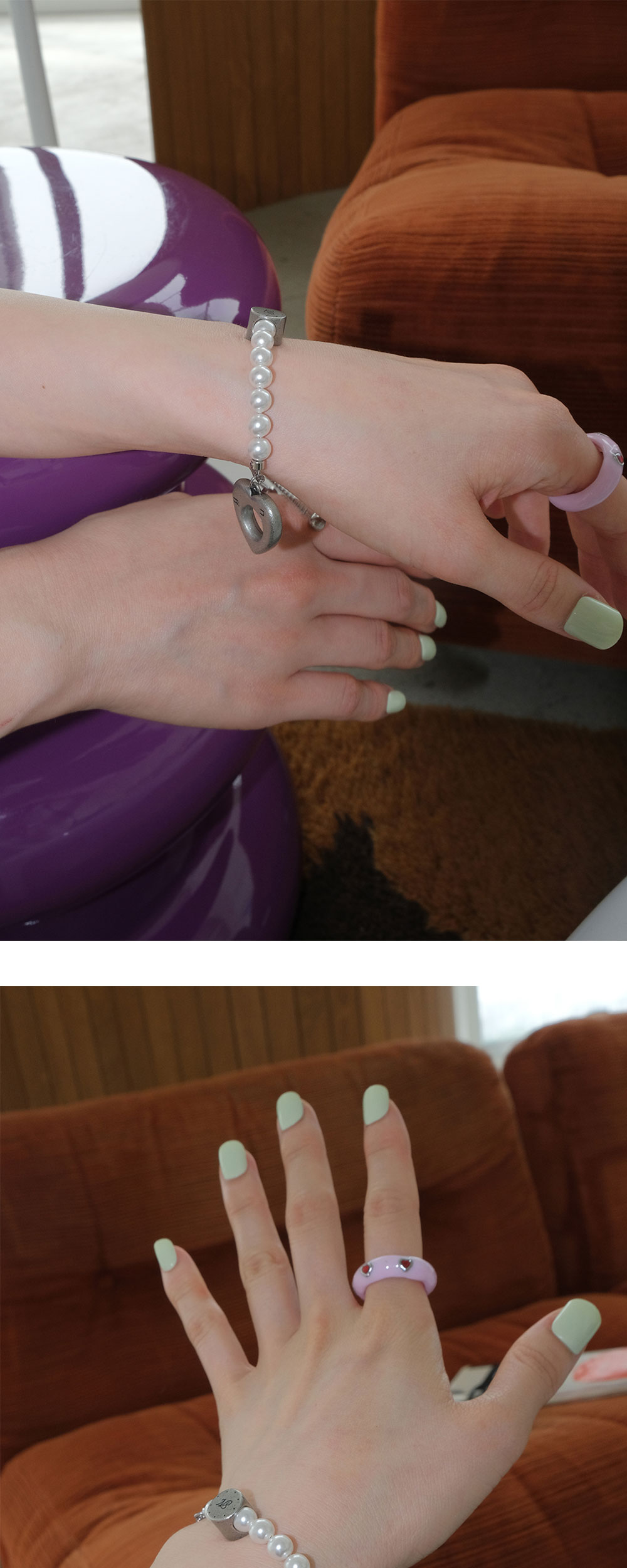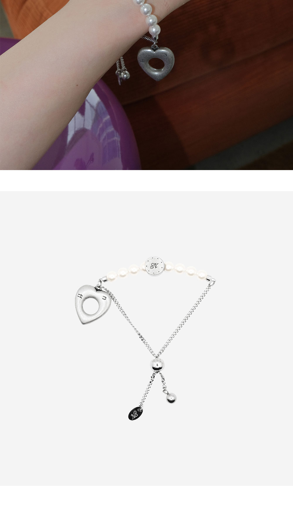 엔프프 하트 펄 브레이슬릿 실버