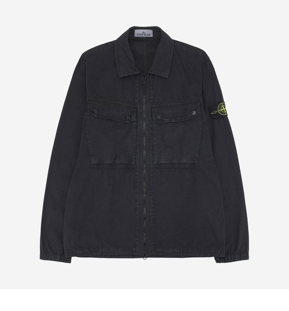 스톤 아일랜드 102WN 브러쉬드 오가닉 코튼 오버셔츠 블랙 - 23FW