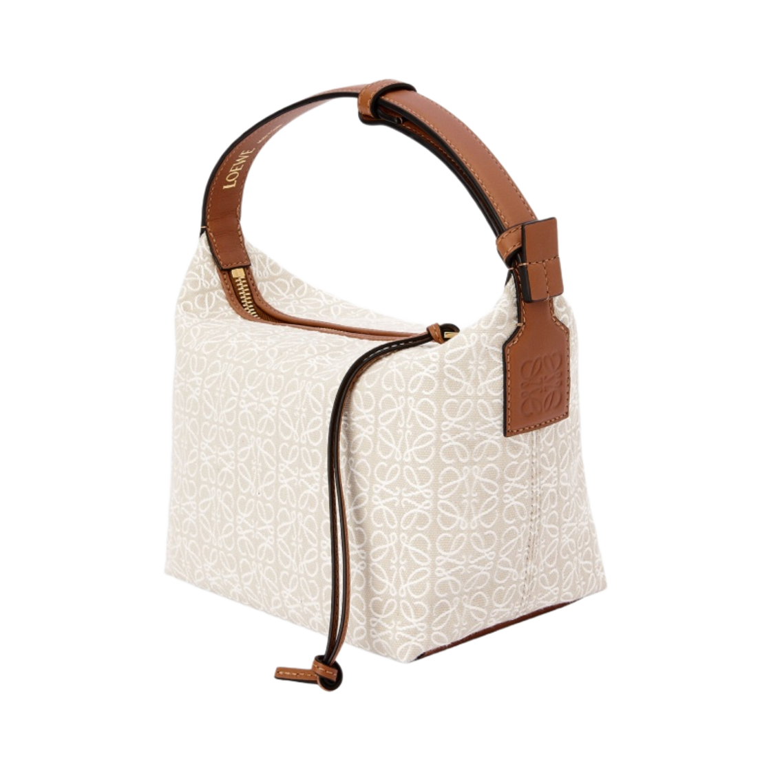 Loewe Small Cubi Bag in Anagram Jacquard and Calfskin Ecru Tan