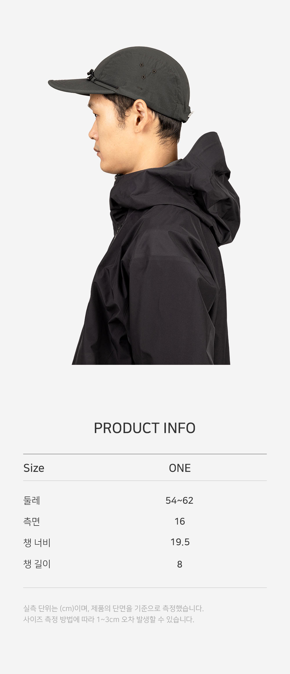 PRODUCT: CAP COLOR: CHARCOAL SIZE: ONE SIZE (56 - 62cm) OUTSHELL: NYLON 100% LINING: NYLON 100% PRICE: 62,000 KRW - 전면에서 E-스트링으로 조절 가능한 독특하고 귀여운 디자인의 덕 캡 - 깊고 넓은 모자의 형태로 넉넉하고 편안한 착용감 - 보이지 않는 내부까지 완벽에 가까운 터널 봉제로 높은 퀄리티 - 8cm 바이어스 마감 챙 사용 - 뛰어난 퀄리티의 우진 플라스틱 부자재 사용