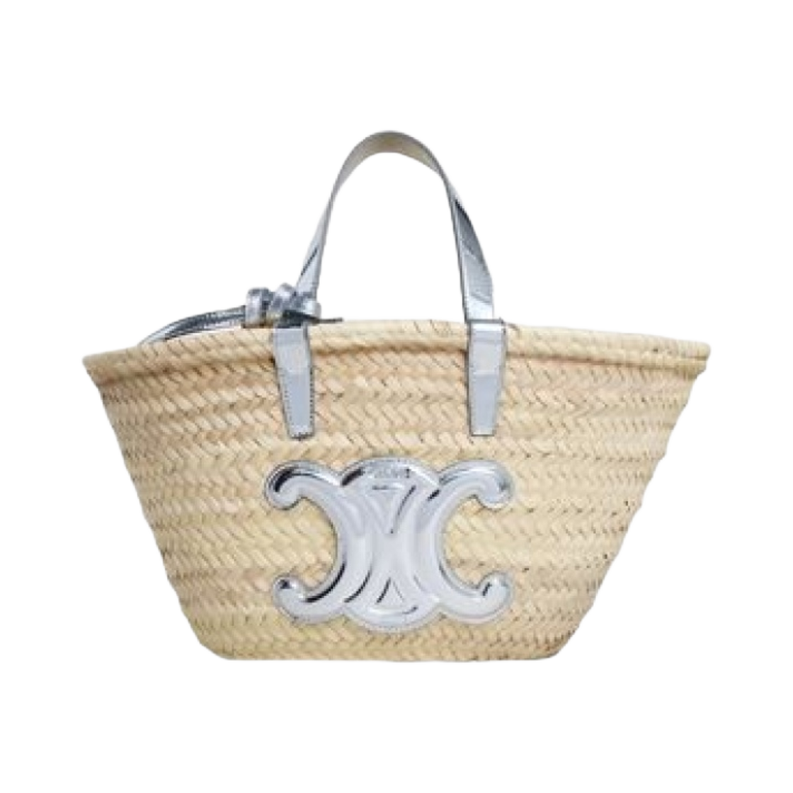 Celine Teen Triomphe Celine Classic Panier in Palm Leaves and Mirror Textile Silver