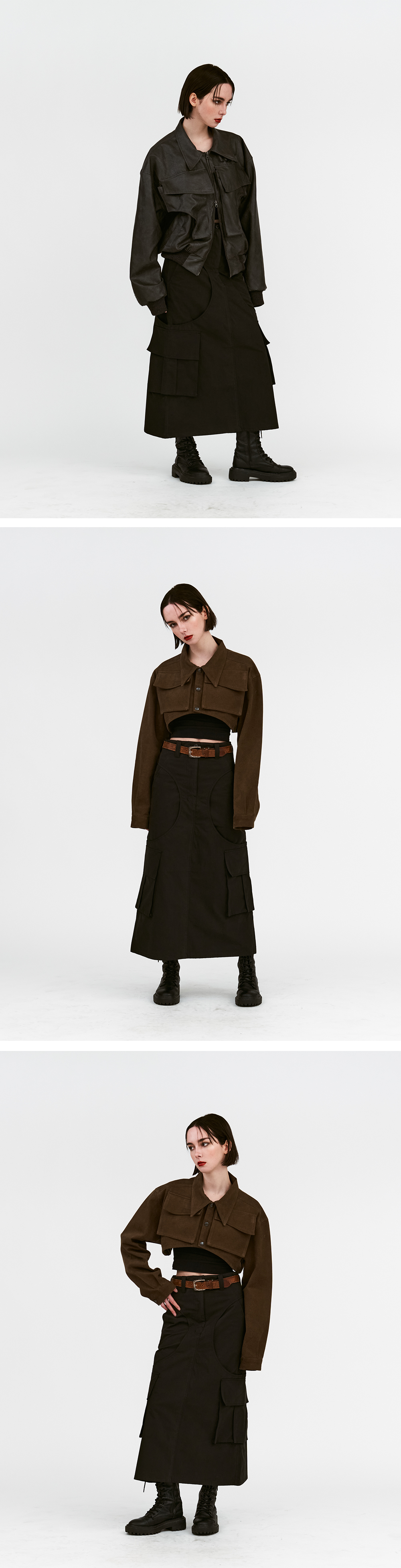 풀오브썬 우먼 써클 카고 스커트 블랙