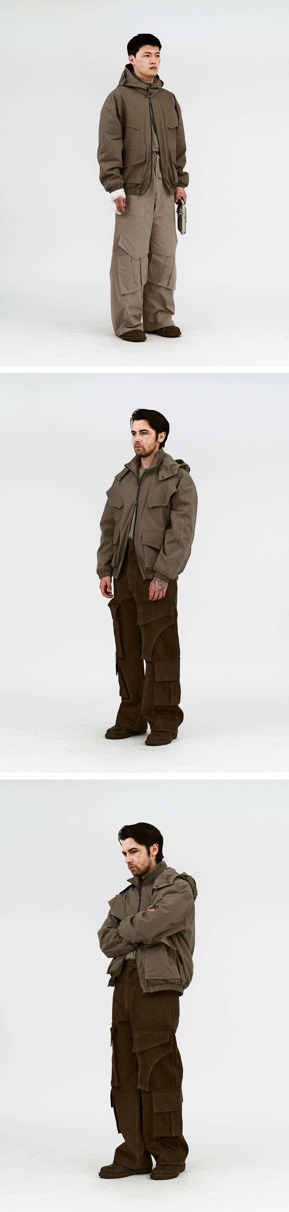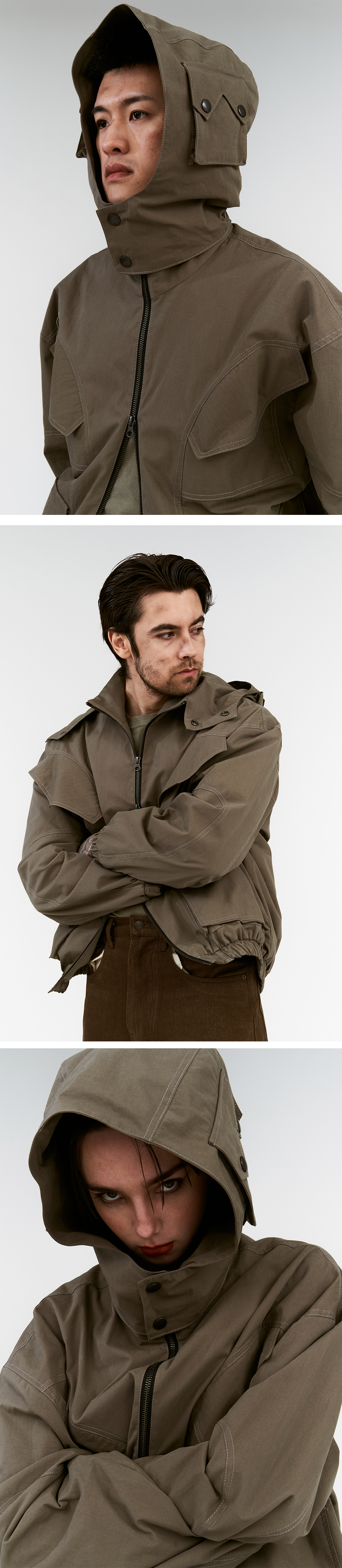 Full of Ssun Multi Pocket Hood Jacket Light Khaki