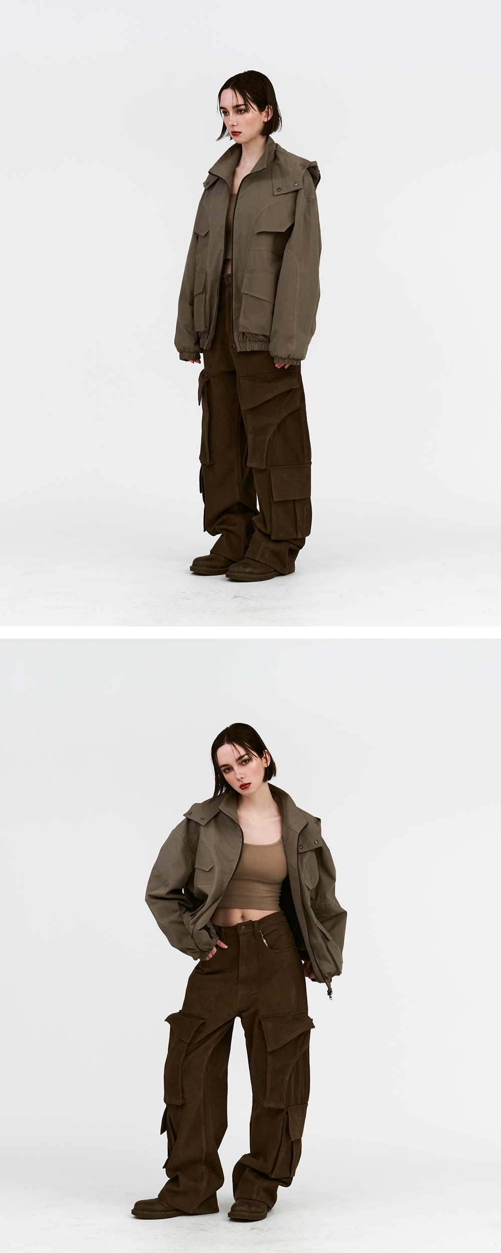 풀오브썬 멀티 포켓 후드 자켓 라이트카키