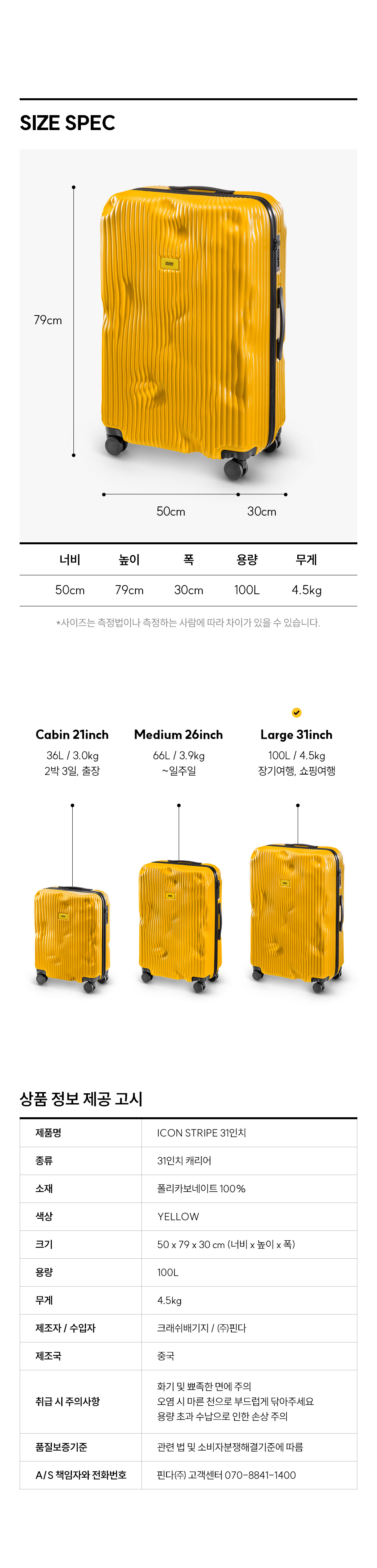 크래쉬배기지 아이콘 31인치 캐리어 스트라이프 옐로우