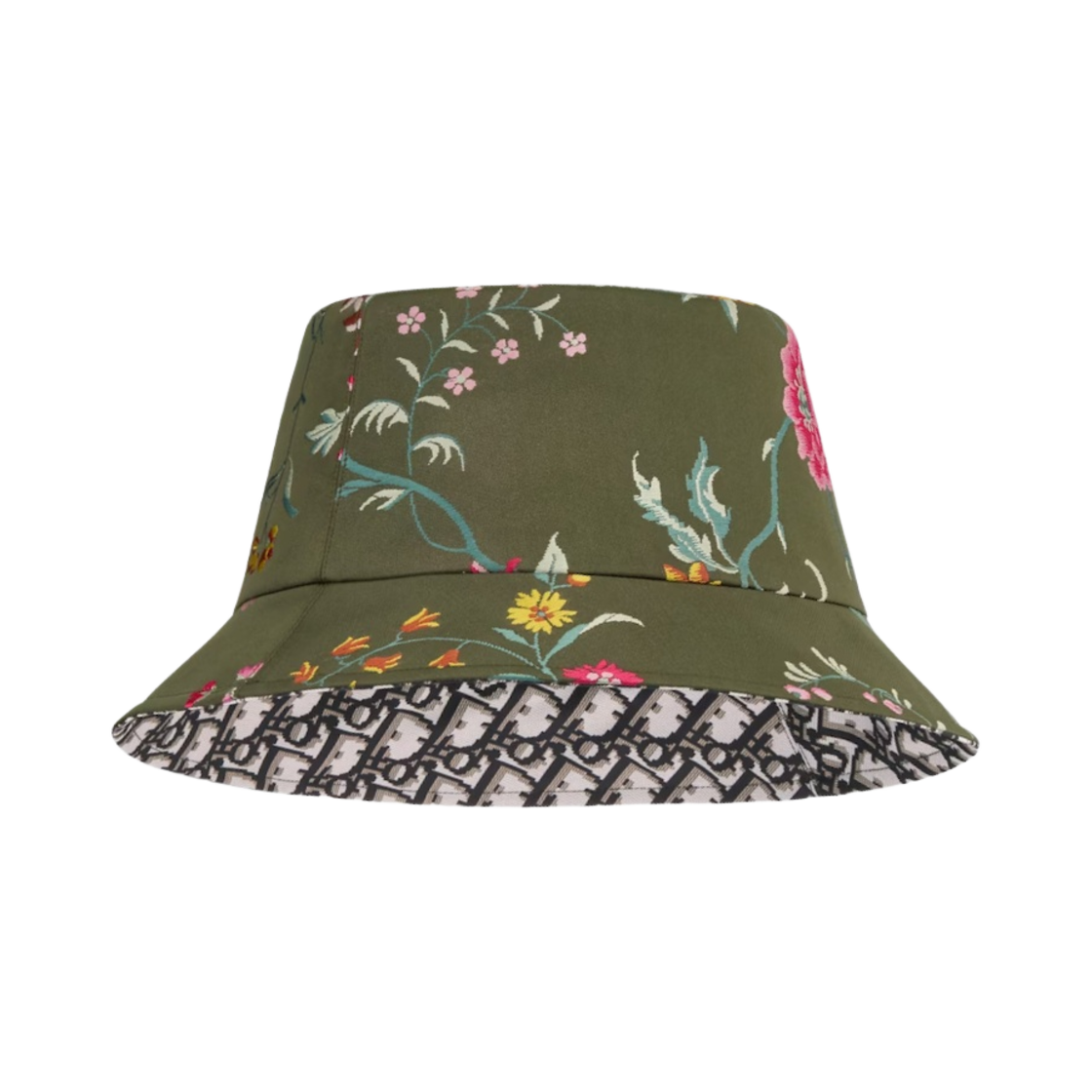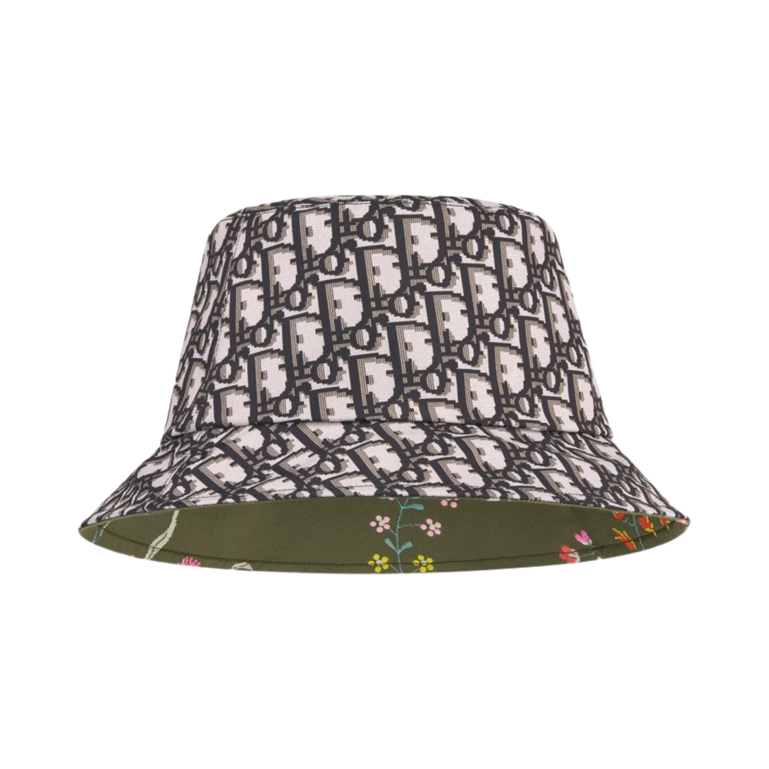 (W) Dior Teddy D Dior Petites Fleurs Reversible Small Brim Bucket Hat Khaki Multicolor Technical Jacquard