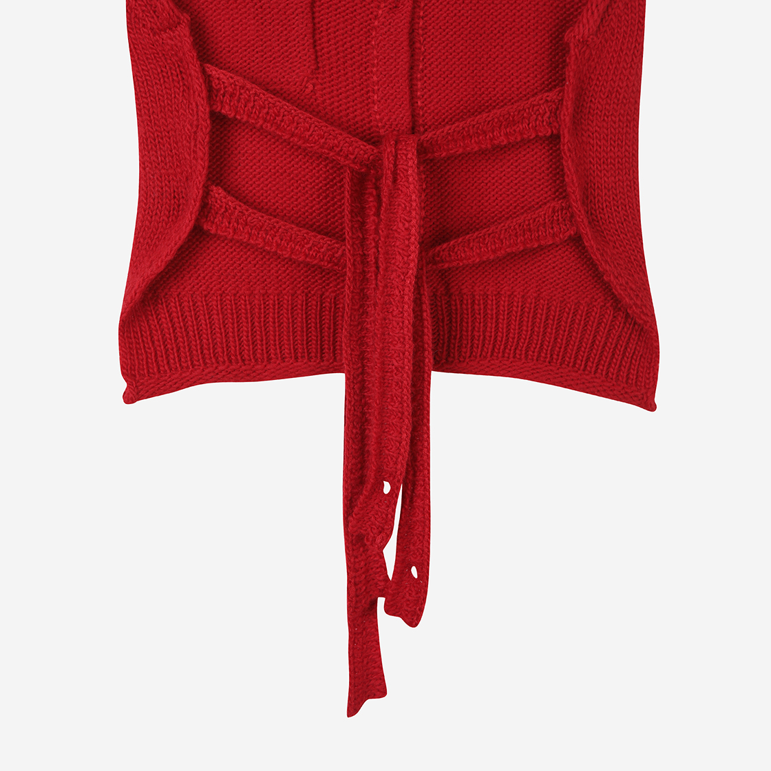 리본 디테일이 매력적인 퍼버즈의 울 스트링 탑 앤 스카프를 소개합니다. - 울 100% 굵은 직사 사용 (일본제) - 등 리본 디자인 - 레귤러 핏 - 앞 단추 - 가슴 주머니 디자인