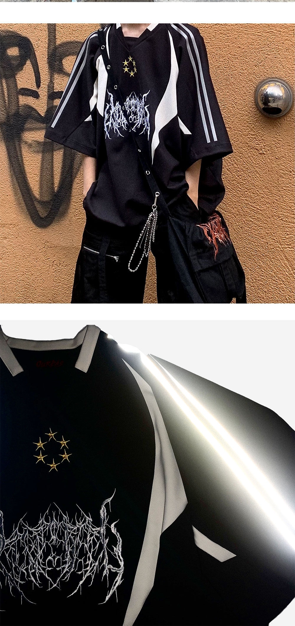 [디테일] -UV차단 -향균 -흡한속건 -냉감 원단 -정면 메탈 로고 아트워크 -정면 팝업(성공) 횟수를 의미하는 별 자수 -남녀공용 오버사이즈 핏 -후면 리플렉티브 로고,넘버링 아트워크 -소매 리플렉티브 스포티 라인 -두께감 있는 기능성 원단 -177CM L사이즈 피팅