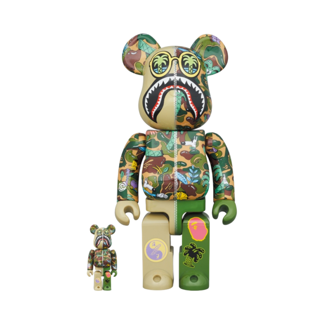 Bearbrick x Steven Harrington x BAPE Shark 100% & 400% Set Green Camo