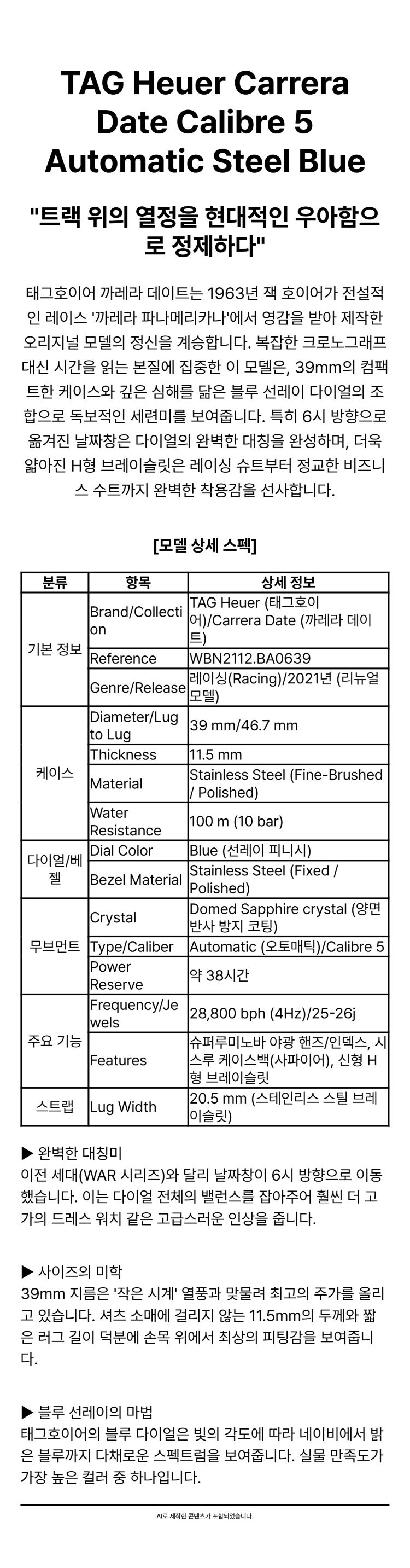 태그 호이어 까레라 데이트 칼리버 5 오토매틱 스틸 블루