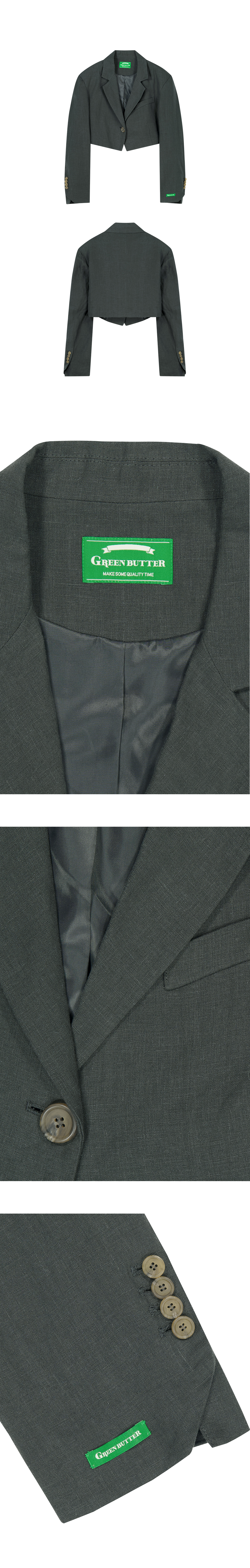- 겉감 린넨 100% - 크롭기장의 여유로운 품의 자켓 - 소매 밑단의 각진 사이드트임 - 여밈은 안쪽단추를 사용 - 그린버터라벨 포인트 - 자연의 원료로 제작된 시그니처향과 함께 배송됩니다.