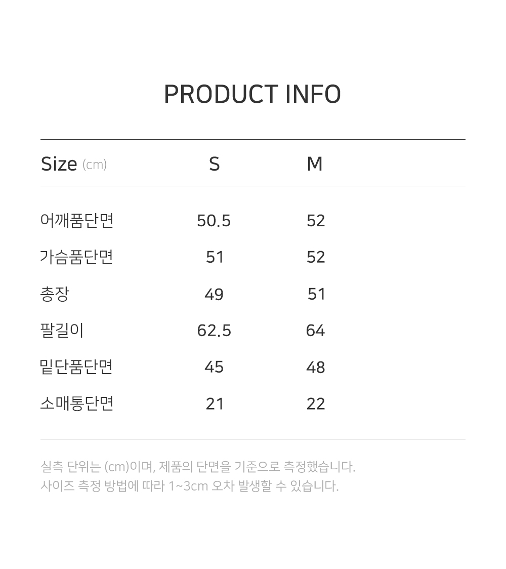 측정 방법에 따라 사이즈에 일부 오차가 있을 수 있습니다.