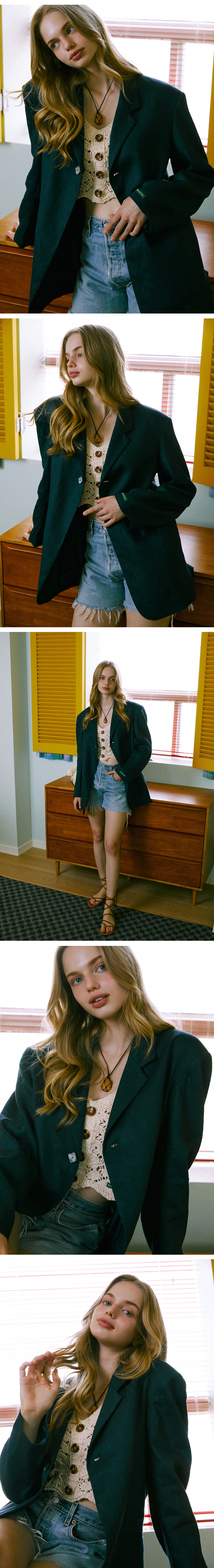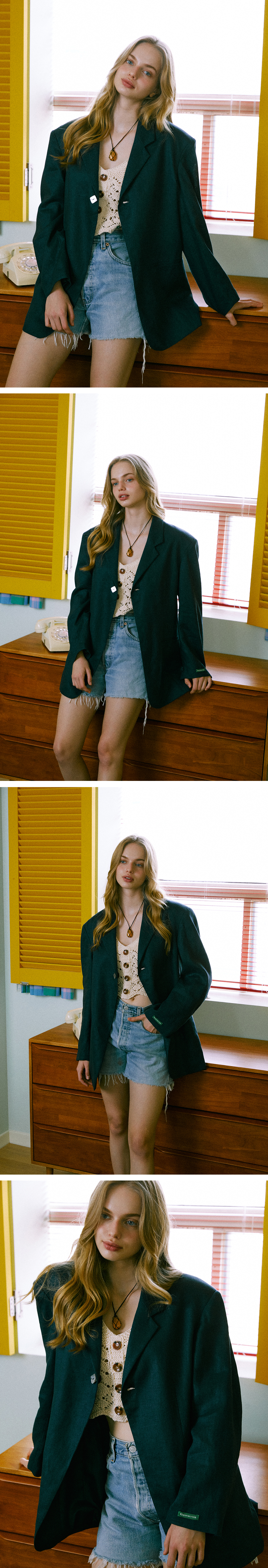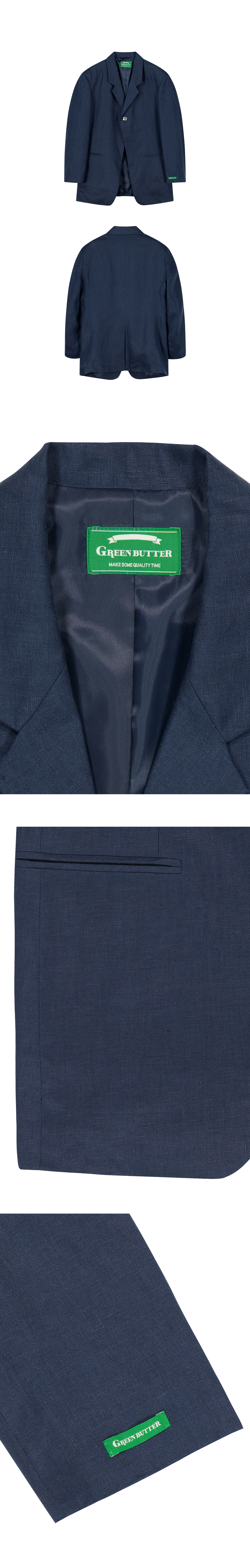 그린 버터 우먼 스퀘어 쉘 버튼 린넨 자켓 네이비
