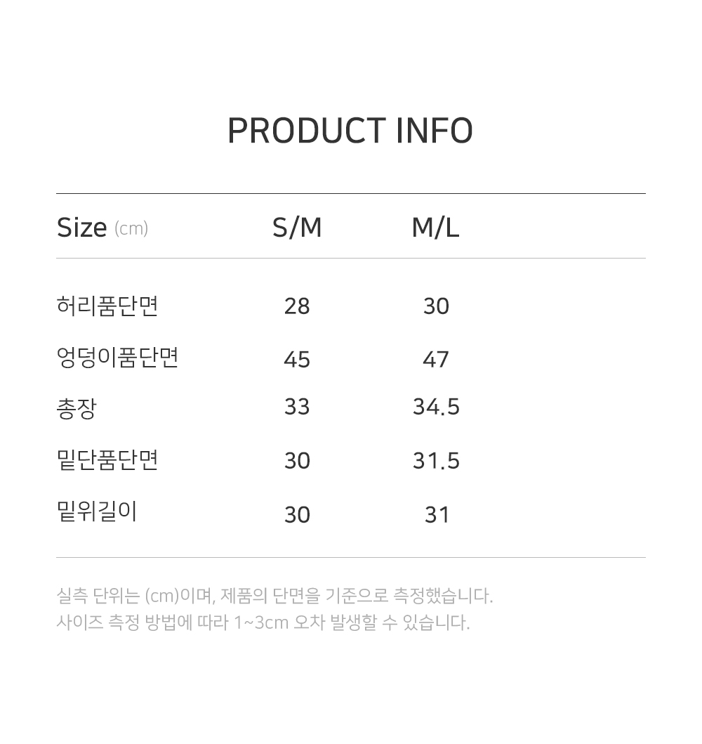 실측 단위는 cm이며, 제품의 단면을 기준으로 측정했습니다.
