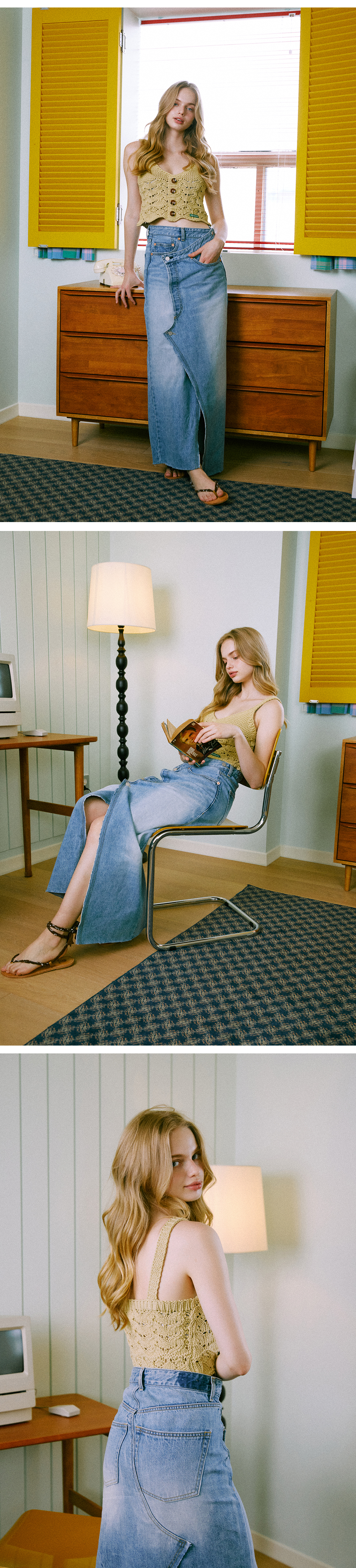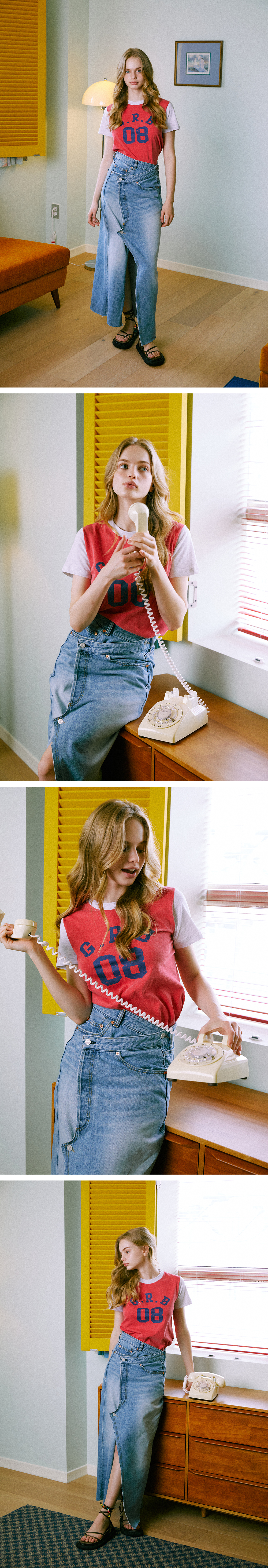 - 워싱 후 제 재봉해 빈티지한 무드의 스커트 - 언발란스형태의 랩스커트 - 맥시한 기장, 기장수선이 가능한 밑단형태 - 그린버터의 하이퀄리티 데님라인 - 빈티지한 무드의 워싱으로 부드럽고 편안한 착용감 - 무광실버컬러의 제작단추사용 - 자연의 원료로 제작된 시그니처향과 함께 배송됩니다.
